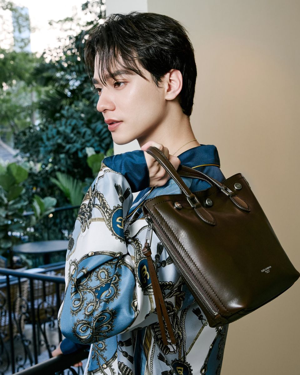สำหรับคอลเลคชั่นสุภาพบุรุษ ยังคงความละเมียดละไมในรายละเอียดแบบ Dolce&Gabbana นำเสนอผ่านนักแสดงชาย เก่ง หฤษฎ์ มาในลุคเสื้อเชิ้ต ทีเชิ้ต และกางเกงขายาว จับคู่กระเป๋า Atene หนังลูกวัว เสริมด้วยสร้อยคอไฟน์จิวเวลรี่ Good Luck Necklace ทองคำ 18 กะรัตเคลือบอีนาเมล สัญลักษณ์เขาสัตว์นำโชคที่เพิ่มลูกเล่นให้ลุคทางการดูมีเสน่ห์ยิ่งขึ้น
