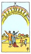 อิทธิพลของไพ่ 10 ถ้วย (Ten of Cups) คุณที่มีปัญหากัลแฟนจะปรับความเข้าใจกันได้ และคนลุ้นเรื่องบุตรจะสมหวัง ด้านการเงินพอมีเข้ามาหมุนเวียน แต่การเสี่ยงโชคไม่ค่อยเด่นจงอย่าริ ด้านการงานเริ่มดีขึ้นอย่างน่าพึงพอใจ และคนที่เป็นเจ้านายตนเองจะได้งานเข้ามา ควรทำทานกับคนยากไร้เพื่อเสริมดวงชะตาตนเอง