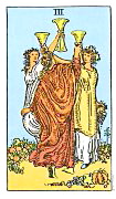 อิทธิพลของไพ่ 3 ถ้วย (Three of Cups) คุณที่คบหากับแฟนมานานจะได้ใช้ชีวิตคู่ และคนโสดจะได้พบคนที่ใช่ ทำให้ชีวิตเริ่มมีสีสันขึ้นมาอีกหน ด้านการเงินจะเดินสะพัดได้ผู้ใหญ่ให้การช่วยเหลือ และคนที่ชอบเสี่ยงการเล่นหุ้นจะได้กำไร ด้านการงานจะทำงานอย่างมีความสุข ส่วนคนที่ทำงานอิสระกิจการจะไปได้สวยเดินหน้าเกินที่วางเป้าไว้ ส่วนคนที่คิดจะเริ่มต้นเป็นเจ้านายตนเองไม่ต้องลังเล ควรทำบุญไหว้บูชาพระธาตุดอยสุเทพเพื่อเสริมดวงชะตาชีวิตตนเอง