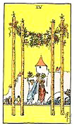 อิทธิพลของไพ่ 4 ไม้เท้า (Four of Wands) คุณที่คิดมีธุรกิจส่วนตัวเป็นโอกาสดีในการเริ่มต้น ส่วนคนที่ทำงานเป็นลูกจ้างเขาเป็นไปเรื่อยๆ แต่ก็อบอุ่นและทำงานอย่างมีความสุข ด้านการเงินแม้พอมีเงินเข้ามาแต่เก็บไว้ไม่ค่อยได้ ส่วนการเสี่ยงโชคไม่ค่อยเด่นด้านความรักเรื่อยๆไม่หวือหวา และที่อยู่กินเป็นครอบครัวเป็นรักที่เข้าใจกันแม้ไม่หวานแหว๋วดังเดิม ช่วงนี้ควรไปทำบุญไหว้บูชาหลวงพ่อโสธรเพื่อเสริมดวงชะตาตนเองให้ดีขึ้น