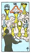 อิทธิพลของไพ่ 7 ถ้วย (Seven of Cups) คุณจะปวดหัวกับเพื่อนร่วมงานที่ชอบเม้าท์เรื่องส่วนตัวของเรา และคนค้าขายกิจการไปได้ดี โดยเฉพาะที่ทำเกี่ยวกับอาหารการกิน ส่วนการเงินเดินสะพัดแต่ก็เก็บไว้ไม่อยู่ ส่วนความรักอย่าไปฟังคำพูดคนอื่นมากเกิน มิฮะนั้นรักที่ดูหวานชื่นจะมีแต่เรื่องวุ่นวาย ควรทำบุญทำทานนั่งสมาธิแผ่เมตตาจะทำให้ชีวิตราบรื่นขึ้น