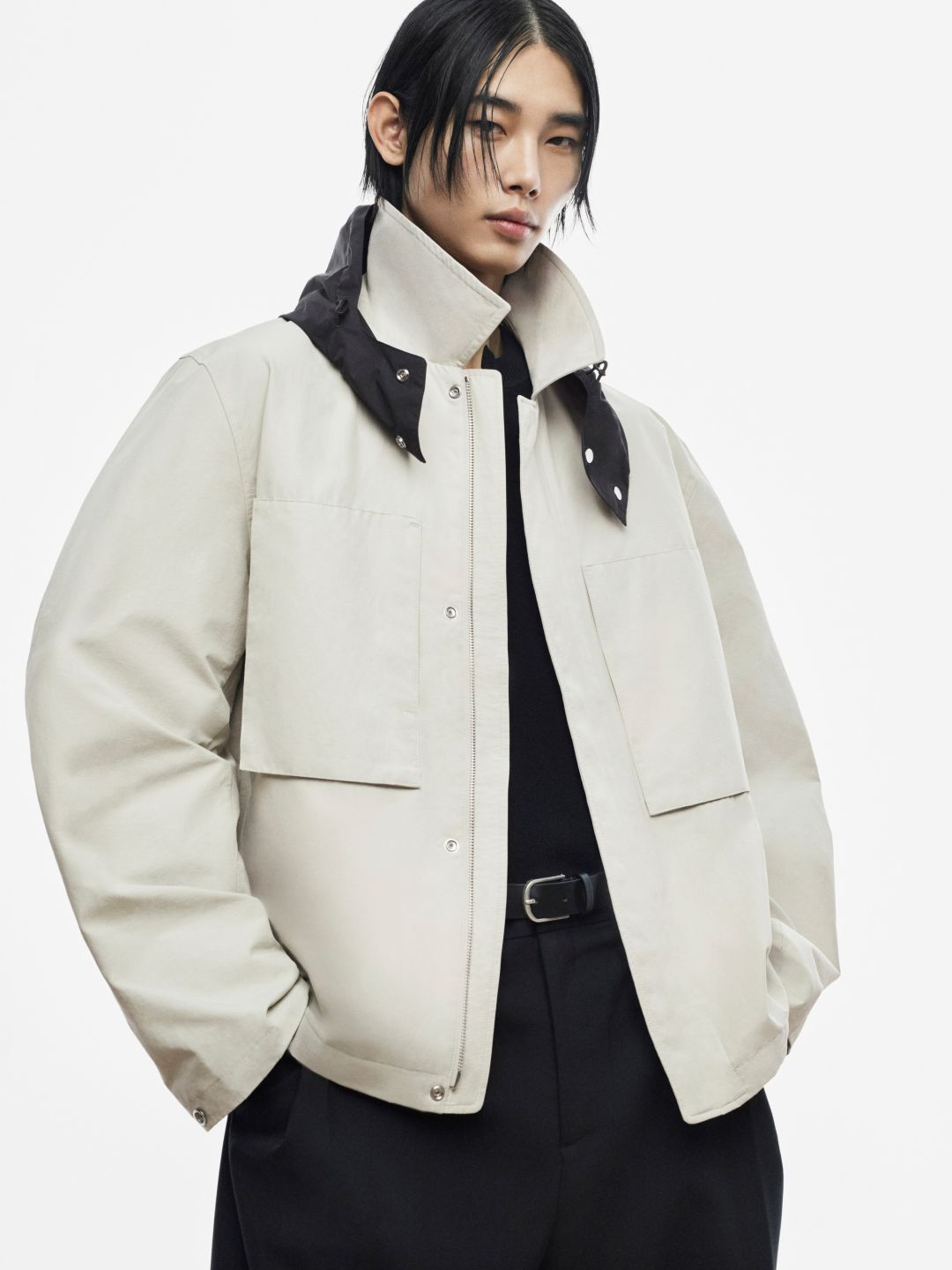 เสื้อตัวนอกเป็นตัวชูโรงของคอลเลกชันที่มอบทั้งความอเนกประสงค์และความโดดเด่นในช่วงรอยต่อของฤดูกาล นำโดยเทรนช์โค้ททรงโอเวอร์ไซส์พร้อมเข็มขัดเน้นช่วงเอว สำหรับเสื้อผ้าบุรุษมีการเพิ่มเสื้อโค้ท Balmacaan ลายก้างปลา ขณะที่แจ็กเก็ตนักบิน (aviator) เนื้อนุ่มถูกยกระดับด้วยปกคอตั้งและกระดุมซ่อน นอกเหนือจากนั้น รูปแบบของชุดกีฬาและชุดลำลองปรากฏให้เห็นในแจ็คเก็ตที่มีกระเป๋าแบบมีฝาปิดขนาดใหญ่