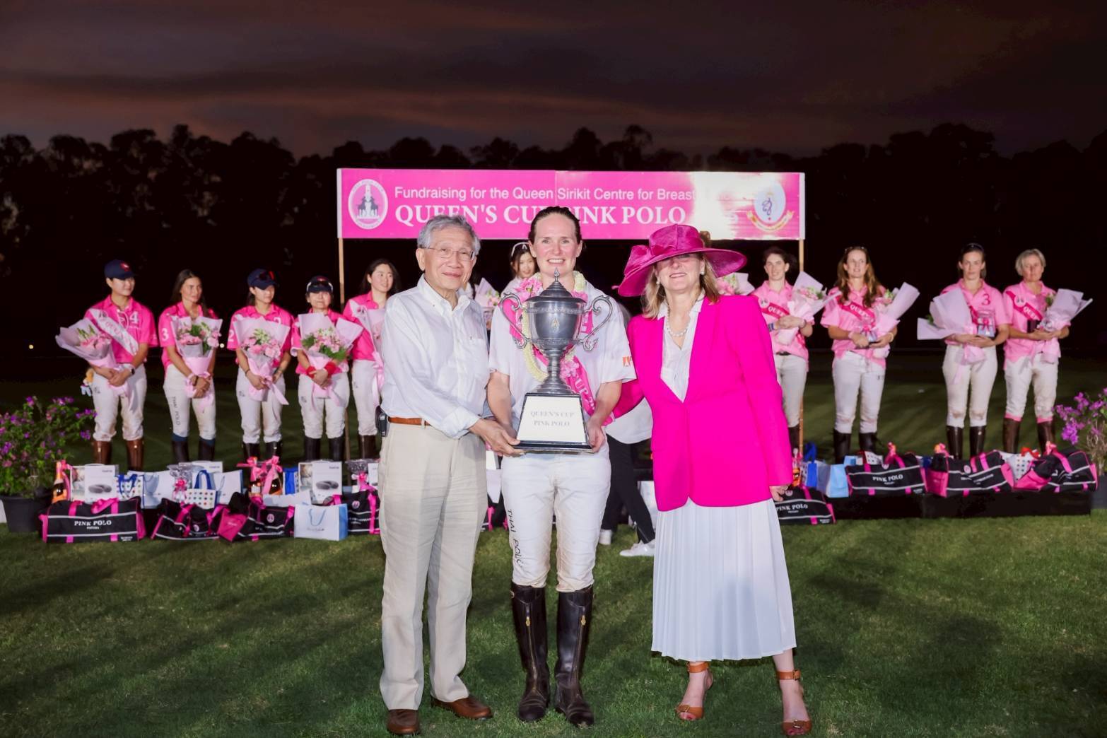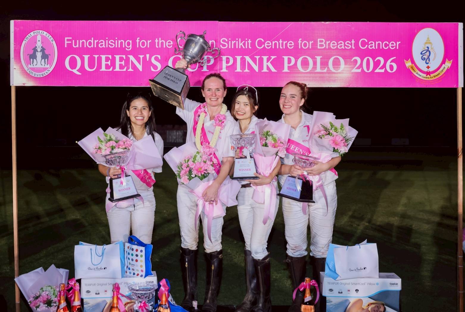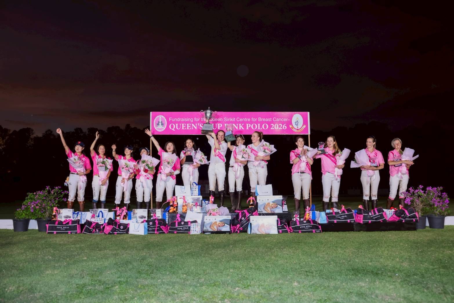 จบลงอย่างน่าประทับใจสำหรับการจัดการแข่งขันขี่ม้าโปโลหญิงการกุศล รายการ “ควีนส์คัพ พิงค์ โปโล 2026” (Queen’s Cup Pink Polo 2026) ชิงถ้วยพระราชทาน สมเด็จพระนางเจ้าสิริกิติ์ พระบรมราชินีนาถ พระบรมราชชนนีพันปีหลวง เพื่อหารายได้ช่วยเหลือผู้ป่วยมะเร็งเต้านมที่ขาดโอกาสภายใต้การดำเนินงานของศูนย์สิริกิติ์บรมราชินีนาถ เพื่อโรคมะเร็งเต้านม ที่จัดโดย บี.กริม นำโดย มร.ฮาราลด์ ลิงค์ ประธาน บี.กริม ในฐานะนายกสมาคมกีฬาขี่ม้าแห่งประเทศไทย พร้อมด้วย นันทินี แทนเนอร์ อุปนายกสมาคมฯ ประธานจัดการแข่งขันขี่ม้าโปโลหญิงการกุศล เมื่อวันเสาร์ที่ 28 กุมภาพันธ์ 2569 ที่ผ่านมา ณ สนามไทย โปโล แอนด์ อีเควสเทรียน คลับ พัทยา ซึ่งเป็นการแข่งขันโปโลหญิงระดับนานาชาติ จากทีมประเทศไทย สิงคโปร์ และเกาหลี โดยในปีนี้ทีมเจ้าภาพไทย โปโล (Thai Polo) เป็นผู้คว้าชัยได้ถ้วยพระราชทานฯ ไปครอง ท่ามกลางเสียงกองเชียร์ที่ส่งเสียงเชียร์อย่างสนุกสนาน
