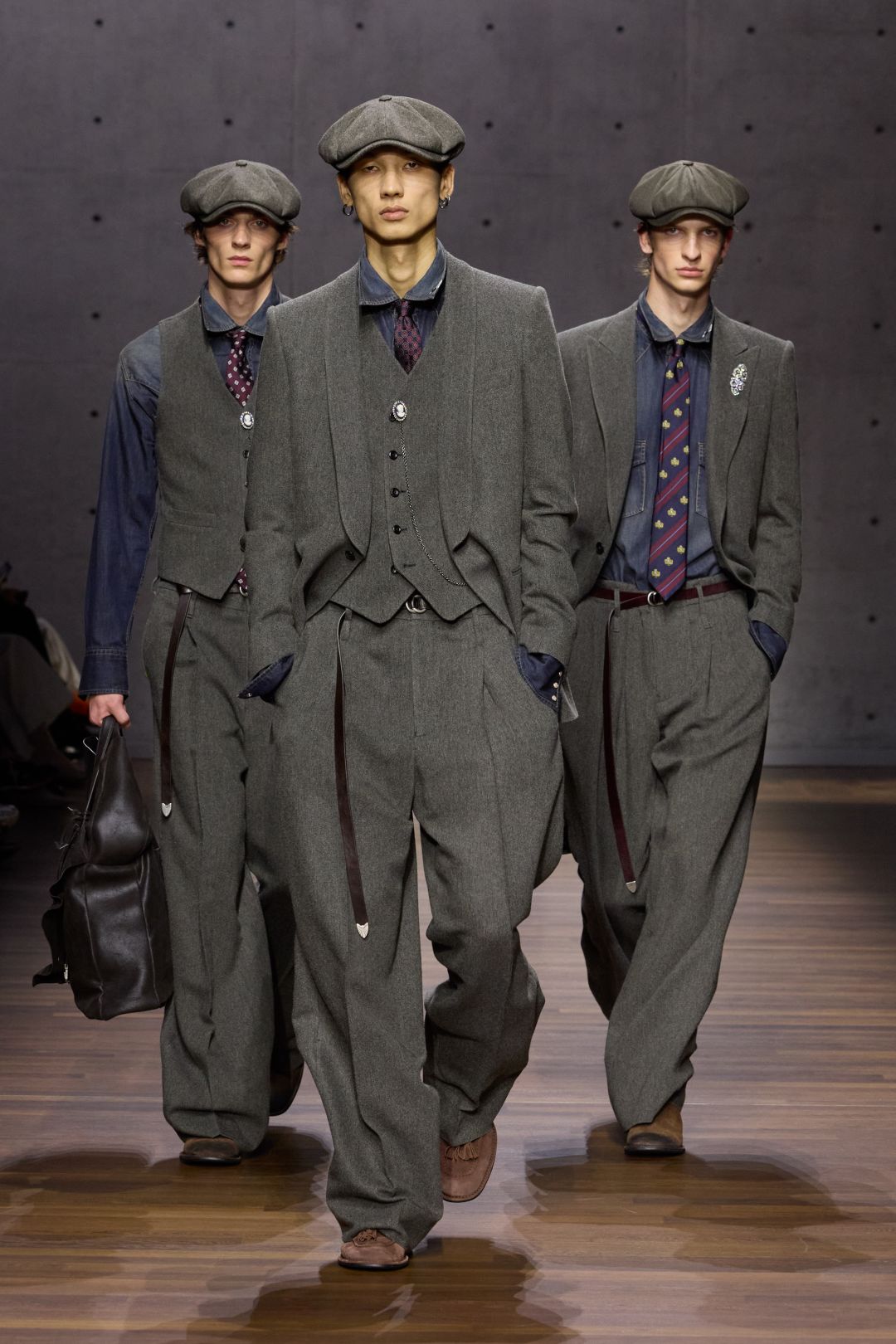 ท่ามกลางฉากหลังที่สมบูรณ์แบบของโรงเรียนดนตรี ที่ซึ่งเหล่านักเรียนชายหญิงกำลังฝึกฝนเพื่อเป็นวาทยกร เรื่องราวของแฟชั่นจึงเริ่มต้นขึ้น โดยเป็นการผสมผสานอย่างลงตัวระหว่างความเนี้ยบแบบอังกฤษ ทั้งเสื้อเทลโค้ท เสื้อกั๊ก หมวกแก๊ป และกลิ่นอายดั้งเดิม เข้ากับความสุนทรีย์และวิถีเมืองแบบอิตาลี คอลเลกชันนี้สื่อสารด้วยความเป็นแฟชั่นที่ร่วมสมัย สะท้อนเอกลักษณ์ และแก่นแท้แห่งความงาม นำเสนอผ่านซิลูเอตที่ดูเพรียวยาวแต่ยังคงความพลิ้วไหว การตัดเย็บช่วงไหล่ที่เฉียบคม และสัมผัสที่ดูเคลื่อนไหวอย่างมีชีวิตชีวา