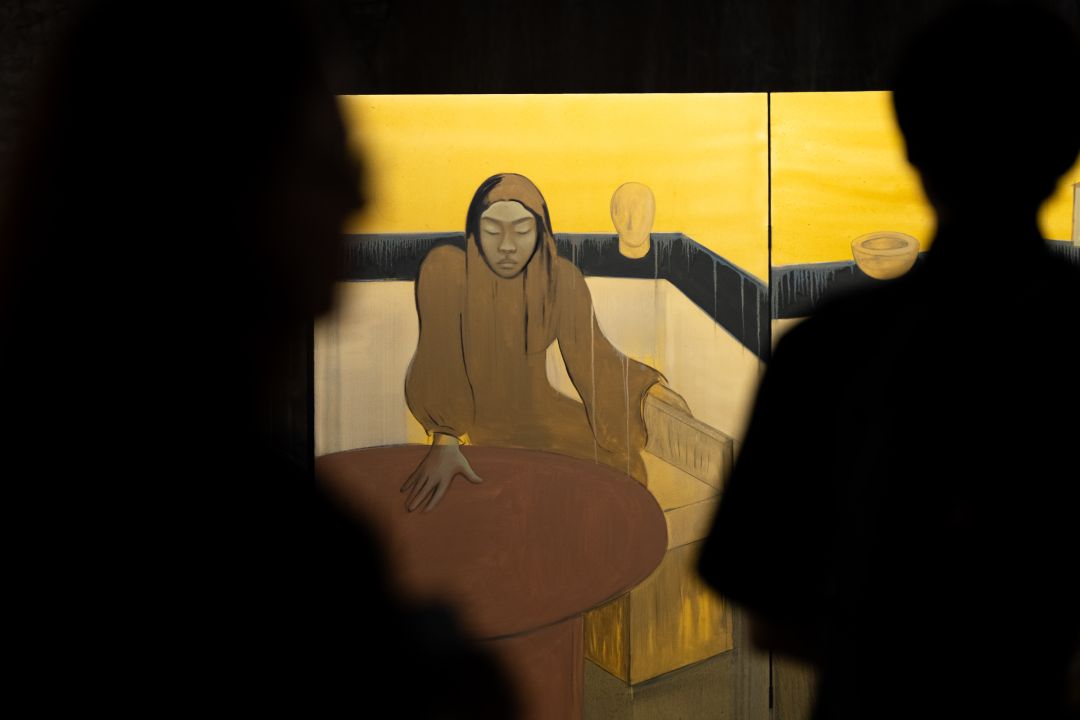 ความโดดเด่นของนิทรรศการในครั้งนี้ คือการเลือกใช้ “ฉากพับ” (Paravents) ในการนำเสนอ ซึ่งทำหน้าที่เสมือนพื้นผิวรองรับผลงานศิลปะและโครงสร้างทางสถาปัตยกรรม ฉากพับกลายเป็น “วัตถุก้ำกึ่ง” ที่เข้ามาจัดการพื้นที่ในเชิงกายภาพ ทำให้เกิด “จุดบอด” ที่จงใจบดบังบางส่วนเพื่อเผยให้เห็นอีกพื้นที่หนึ่ง ซึ่งชวนให้ผู้ชมตั้งคำถามถึงระยะห่างระหว่าง “สิ่งที่ปรากฏ” และ “สิ่งที่ซ่อนเร้น” ไว้อย่างน่าสนใจ ร่วมสัมผัสประสบการณ์แห่งการมองเห็นและการรับรู้ร่องรอยความรู้สึกของศิลปิน ภายในพื้นที่ศิลปะร่วมสมัยใจกลางกรุง ที่มุ่งขับเคลื่อน Urban Culture ของกรุงเทพฯ ณ บางกอก คุนส์ฮาเลอ (Bangkok Kunsthalle)