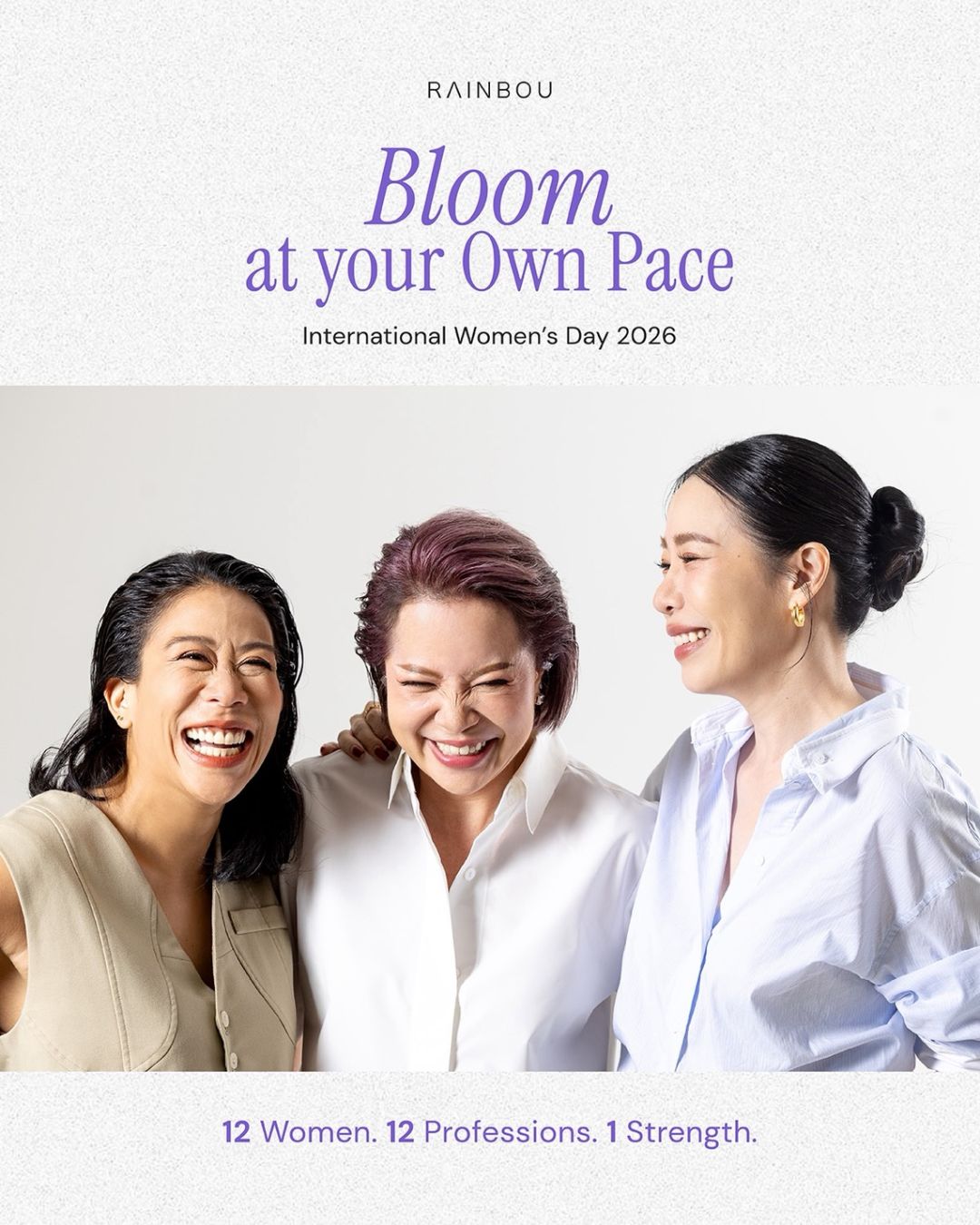 “Bloom at Your Own Pace” จึงไม่ใช่เพียงข้อความสำหรับ International Women’s Day แต่เป็นจุดยืนระยะยาวของ RAINBOU—การเชื่อว่าการเติบโตที่แท้จริงไม่ได้เกิดจากความเร็ว หากเกิดจากความต่อเนื่อง ความมั่นคง และความกล้าที่จะเดินในจังหวะของตัวเอง