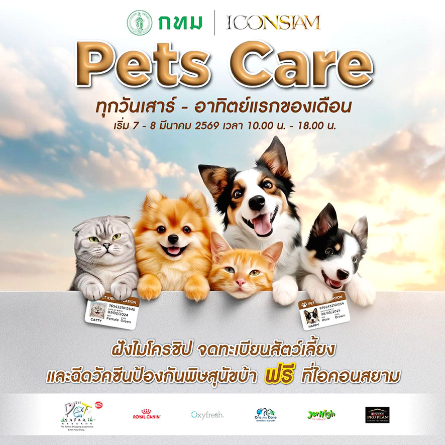 กรุงเทพมหานคร ร่วมกับ ไอคอนสยาม และ PET SAFARI พร้อมด้วยพันธมิตร จัดกิจกรรม “ICONSIAM PETS CARE” เปิดพื้นที่บริการฝังไมโครชิป จดทะเบียนสัตว์เลี้ยง (เฉพาะสุนัขและแมว) และฉีดวัคซีนป้องกันพิษสุนัขบ้า ฟรี! เพื่อช่วยลดภาระค่าใช้จ่ายและเตรียมความพร้อมให้เจ้าของสัตว์เลี้ยงปฏิบัติตามกฎหมายได้อย่างถูกต้อง