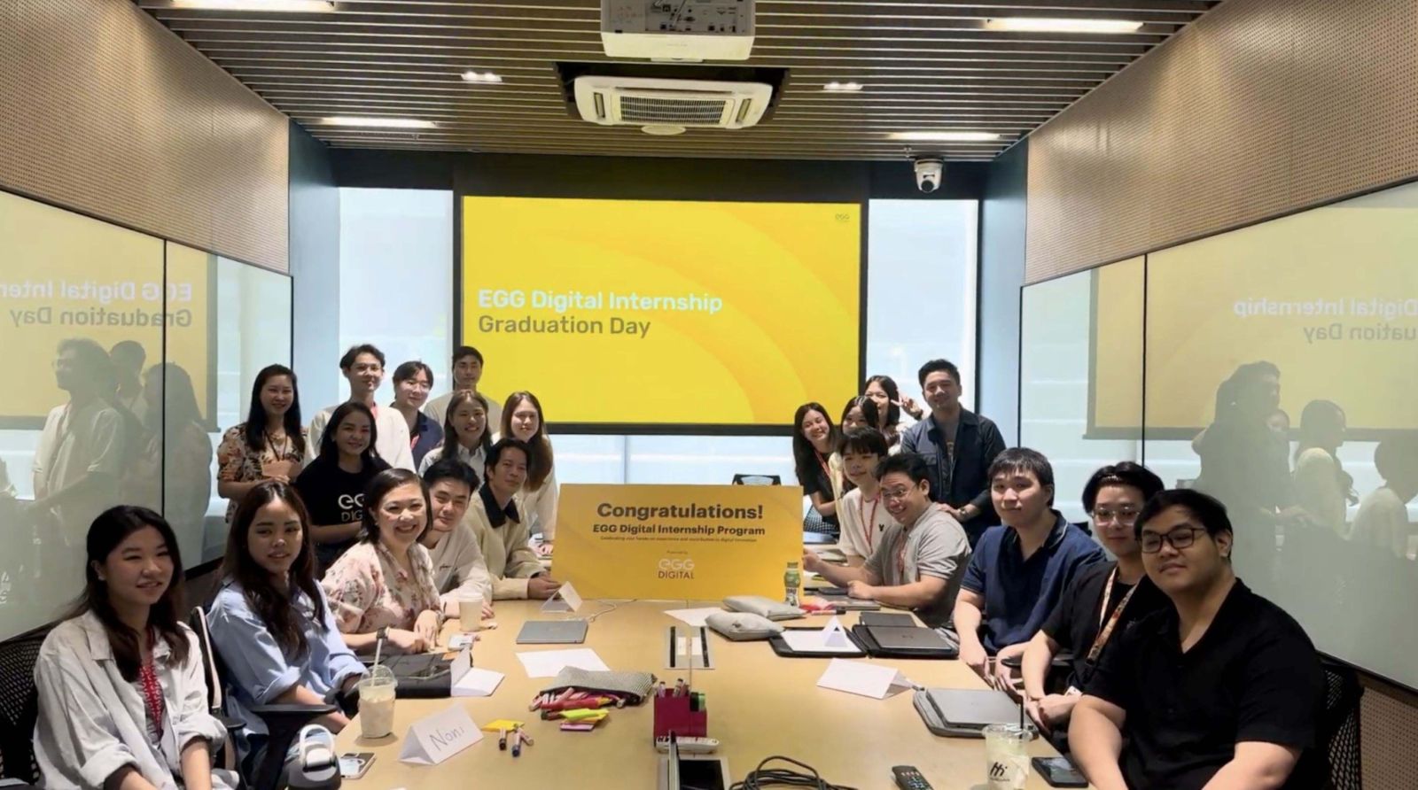 โครงการนี้ไม่เพียงช่วยสร้างบุคลากรคุณภาพให้กับอุตสาหกรรม แต่ยังเป็นโครงการที่ช่วยดึงดูดคนรุ่นใหม่ที่มีความสามารถเข้ามาร่วมงานและเติบโตไปพร้อมกับองค์กร โดยแต่ละปี เอ้ก ดิจิทัลจะลงนามความร่วมมือกับมหาวิทยาลัย จัดโรดโชว์พาพนักงานที่มีความเชี่ยวชาญด้านการวิเคราะห์ข้อมูลไปให้ความรู้ และสอนทักษะการใช้ AI ให้กับนักศึกษา มีการคัดเลือกนักศึกษาเข้าร่วมฝึกงานกับบริษัทฯ โดยเน้นฝึกเสมือนทำงานจริงเป็นเวลา 4-10 เดือน ซึ่งพนักงานฝึกงานจะได้ดูแลโปรเจกต์จริงของลูกค้า ร่วมวางแผนการทำงานกับพนักงานรุ่นพี่ ฝึกปฏิบัติด้วยเครื่องมือและเทคโนโลยีที่ทันสมัย เมื่อจบโครงการ นักศึกษาที่มีผลงานโดดเด่นจะมีโอกาสได้เข้าทำงานกับเอ้ก ดิจิทัล ซึ่งในปี 2567 มีนักศึกษาสมัครเข้าร่วมโครงการกว่า 400 คน และได้ร่วมฝึกงานกับบริษัทฯ จำนวน 14 คน (Tech 9 คน, Non-Tech 5 คน) โดยมีนักศึกษาที่ได้รับการบรรจุเป็นพนักงานจำนวน 6 คน (Tech 5 คน คิดเป็น 56%, Non-Tech 1 คน คิดเป็น 20%) และในปี 2568 มีนักศึกษาสมัครเข้าร่วมโครงการกว่า 500 คน ร่วมฝึกงานกับบริษัทฯ จำนวน 42 คน (Tech 14 คน, Non-Tech 28 คน) โดยมีนักศึกษาที่ได้รับการบรรจุเป็นพนักงานจำนวน 4 คน (Tech 4 คน, คิดเป็น 29%)