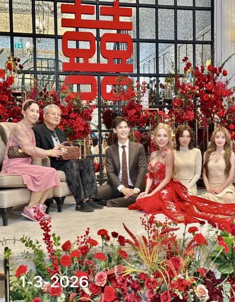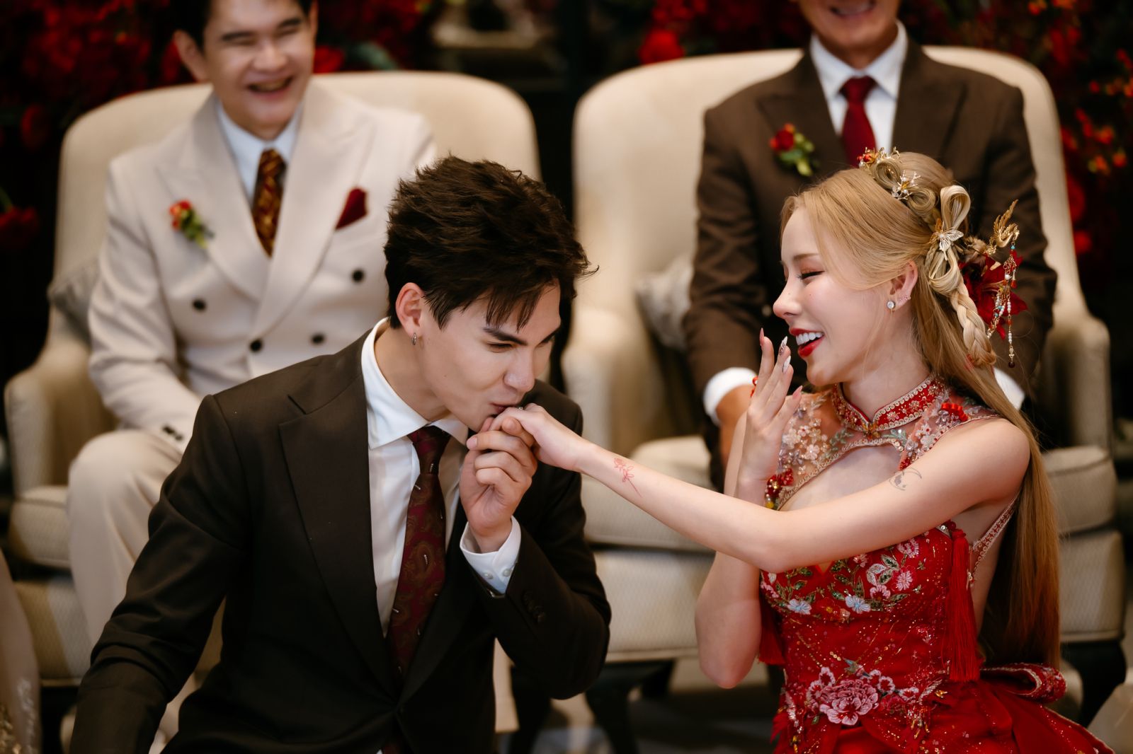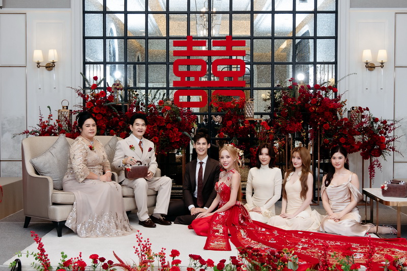โดยพิธีเช้า เป็นยกขบวนขันหมาก สวมแหวน และพิธียกน้ำชา ในธีมสีแดง อันเป็นสีมงคลของชาวไทยเชื้อสายจีน โดยเฉพาะเจ้าสาวมาในชุดสีแดงสด สวย เซ็กซี่ เพิ่มความคึกคักด้วยขบวนแห่สิงโตเพิ่มความเป็นมงคลให้กับบ่าวสาวยิ่งขึ้น ส่วนในช่วงเย็นเป็นพิธีฉลองมงคลสมรส ซึ่งบ่าวสาวต้องการให้เป็นช่วงเวลาแห่งความสุขของทุกคนที่มาร่วมงาน จึงไม่มีพิธีการมากมายเหมือนงานฉลองมงคลสมรส เมื่อคุณพ่อเจ้าสาวนำเจ้าสาวมาส่งให้กับมือเจ้าบ่าว จากนั้นบ่าวสาวได้อ่าน Love Letter ที่ทั้งคู่เขียนถึงกัน ก่อนจะกล่าวคำสาบานรัก ตามด้วย หนิง - ปณิตา พัฒนหิรัญ นักแสดง พิธีกร และผู้จัดละคร ซึ่งเป็นผู้ใหญ่ในวงการบันเทิงที่เจ้าบ่าวเคารพรักมาเป็นประธานกล่าวอวยพร แล้วจึงเข้าสู่ช่วงเวลา After Party ที่บ่าวสาวจัดเต็มกับการโชว์สเต็ปแดนซ์สุดมันส์ ร่วมถึงเพื่อนๆ ที่ต่างออกมาร่วมเต้นรำกันอย่างสนุกสนาน ส่วนของชำร่วยที่บ่าวสาวตั้งใจเลือกมานั่นคือ น้ำหอมกลิ่นพิเศษที่แขกร่วมงานสามารถสร้างสรรค์ได้ด้วยตนเอง เป็นของชำร่วยที่เก๋ไม่ซ้ำใคร