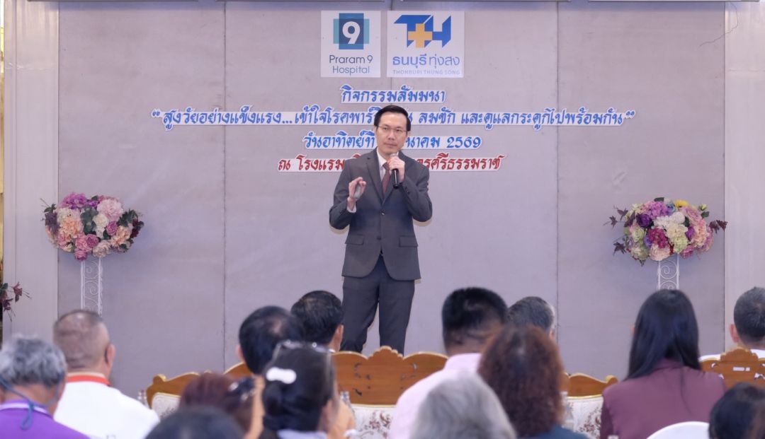 โรงพยาบาลพระรามเก้า ร่วมกับ โรงพยาบาลธนบุรี ทุ่งสง จัดงานสัมมนาสุขภาพภายใต้หัวข้อ “สูงวัยอย่างแข็งแรง” ถ่ายทอดองค์ความรู้ทางการแพทย์ที่ถูกต้องเกี่ยวกับโรคพาร์กินสัน โรคลมชัก และการดูแลสมอง กระดูก และข้อแบบองค์รวม เพื่อเสริมสร้างความเข้าใจให้ผู้สูงวัยและครอบครัวสามารถสังเกตอาการได้ตั้งแต่ระยะเริ่มต้น เข้าถึงการรักษาอย่างเหมาะสม และมีคุณภาพชีวิตที่ดีในระยะยาว