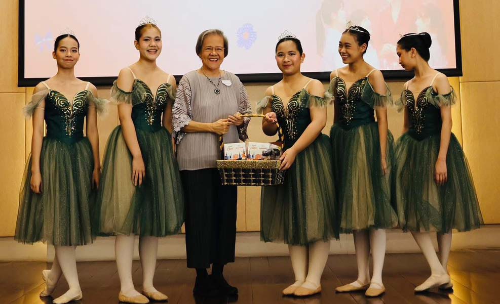 อ.จิรพร รัตนสุนทรากุล มอบของที่ระลึกให้กับนักแสดงบัลเลต์ The Emerald Symphony จากโรงเรียนภัธศิริวิมล แดนซ์ สตูดิโอ