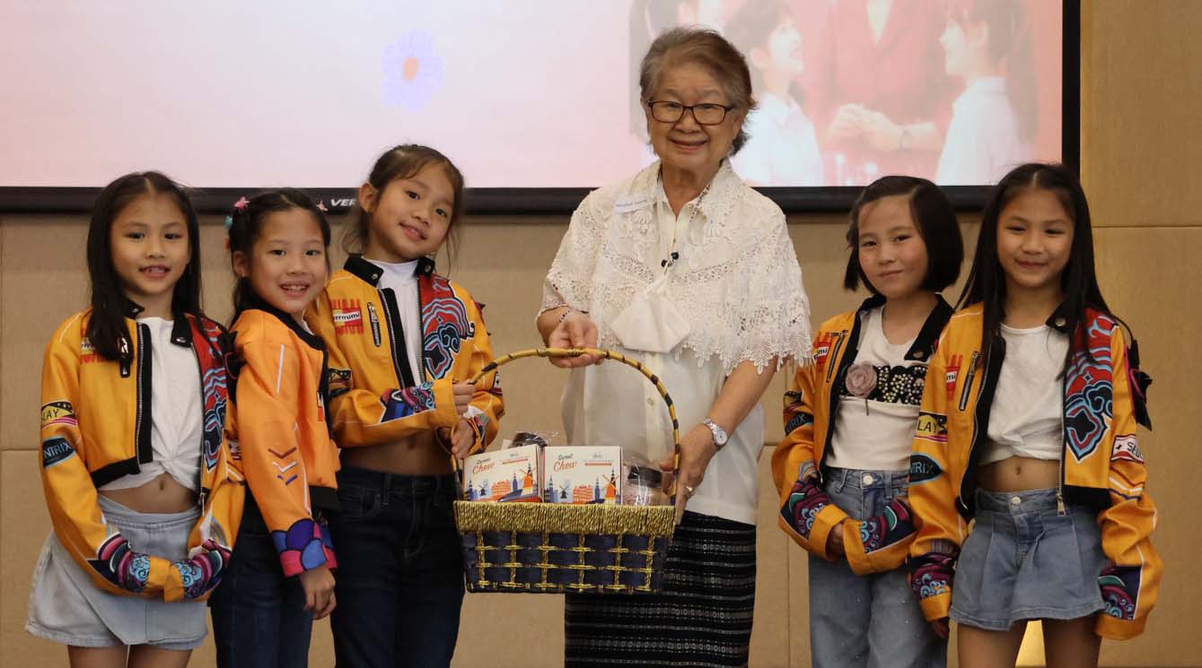 อ.เสริมศรี ไชยเศรษฐ์ มอบของที่ระลึกให้นักแสดงชุด Golden ชั้นป. 2 รร.วัฒนาวิทยาลัย