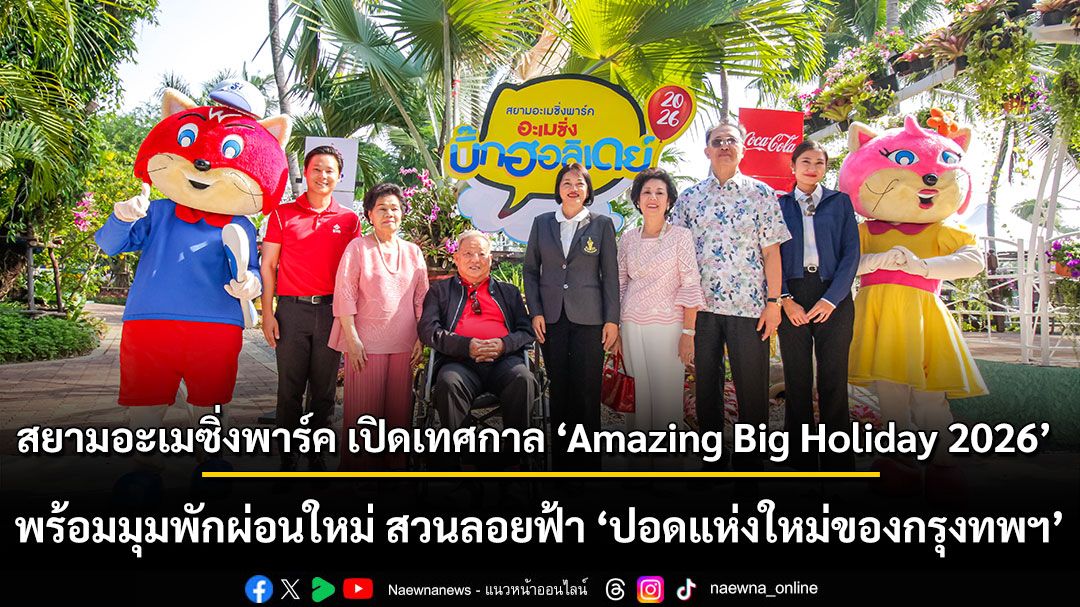 กัลยา บุญแดง ผู้อำนวยการเขตคันนายาว เป็นประธานพิธีเปิดเทศกาล Amazing Big Holiday 2026 และสวนลอยฟ้า “ปอดแห่งใหม่ของกรุงเทพฯ” โดยมี ดร.ไชยวัฒน์ เหลืองอมรเลิศ และผู้บริหารสยามอะเมซิ่งพาร์คให้การต้อนรับ