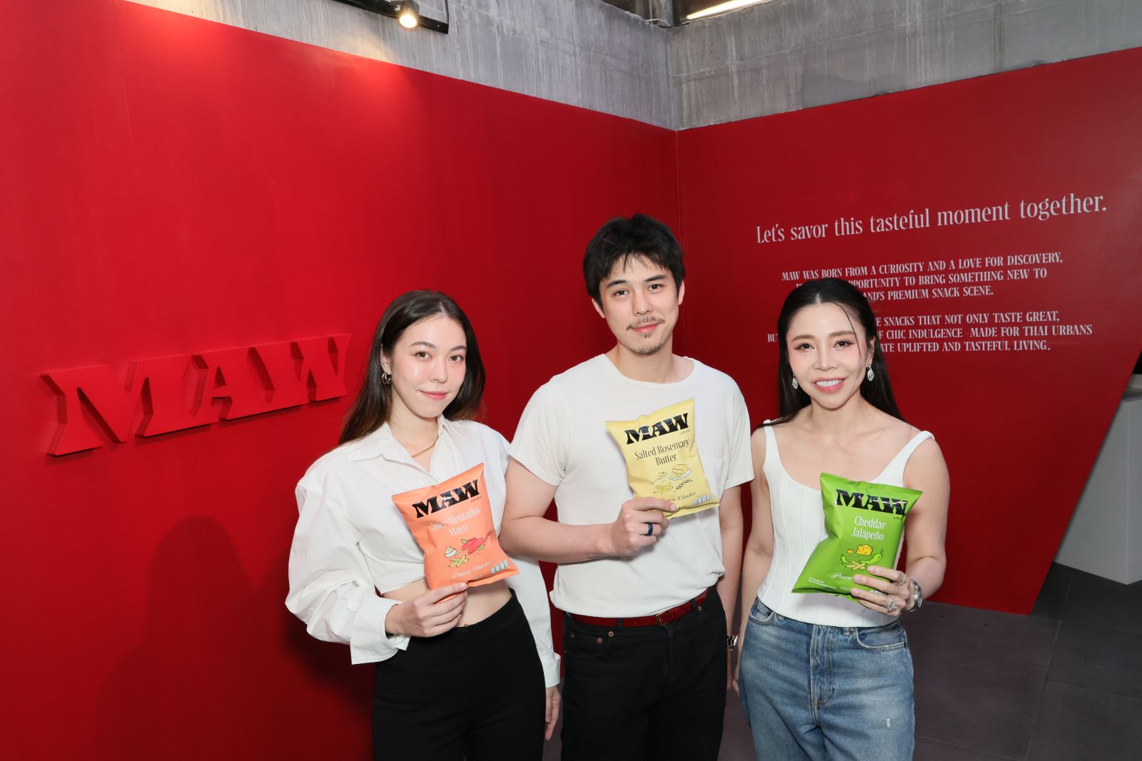 พีช–พชร จิราธิวัฒน์ ผู้ จัดงานปาร์ตี้สุดเอ็กซ์คลูซีฟเปิดตัว MAW (มาว) แบรนด์ขนมพรีเมียมที่ตั้งใจยกระดับขนมทานเล่นให้สามารถเติมเต็มโมเมนต์ธรรมดาให้พิเศษและมีเทสต์ขึ้น ภายใต้คอนเซ็ปต์ Elevate The Ordinary พร้อมเปิดตัวข้าวเกรียบกุ้งพรีเมียม (Premium Prawn Cracker) สไตล์ Global Taste ผ่าน 3 รสชาติ ที่ได้แรงบันดาลใจจากรสชาติระดับโลก ที่มาพร้อมกับกลิ่นหอมชวนลิ้มลอง ไร้กินคาวกุ้ง และ เนื้อสัมผัสกรอบแน่น ดีไซน์ทันสมัย ตอบโจทย์คนรุ่นใหม่ที่เลือกขนมตามรสนิยมและไลฟ์สไตล์