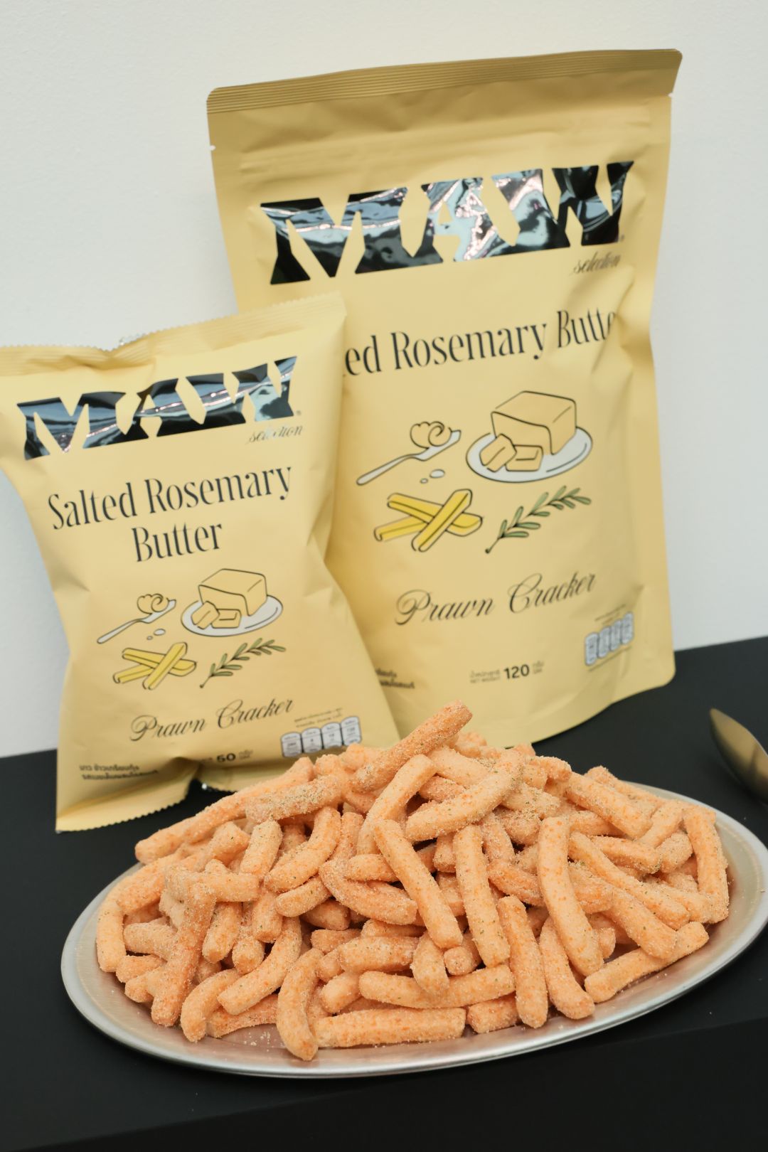 สำหรับการเปิดตัวแบรนด์ MAW (มาว) ในครั้งนี้ ได้ถูกถ่ายทอดประสบการณ์ความอร่อยผ่านข้าวเกรียบกุ้งพรีเมียม (Premium Prawn Cracker) สไตล์ Global Taste ที่พัฒนาขึ้นอย่างพิถีพิถันตั้งแต่วัตถุดิบ ตั้งแต่การคัดเลือกวัตถุดิบเกรดสูงเพื่อลดกลิ่นคาวกุ้งแบบเดิมๆ การออกแบบรูปทรงให้ดูทันสมัยคล้าย French Fries Cut ไปจนถึงการคิดค้นรสชาติที่ได้แรงบันดาลใจจาก Global Taste และนำมาปรับให้เข้ากับรสนิยมของคนไทย