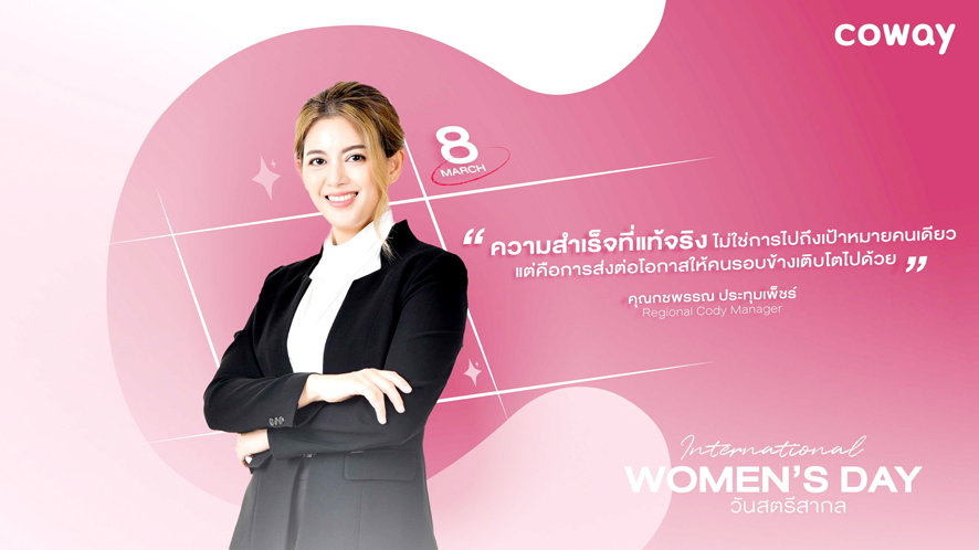 โคเวย์ (COWAY) แบรนด์เครื่องกรองน้ำและเครื่องฟอกอากาศอันดับหนึ่งจากประเทศเกาหลีใต้ ร่วมเฉลิมฉลองวัน International Women’s Day พร้อมสะท้อนพลังของผู้หญิงในองค์กร ซึ่งคิดเป็นสัดส่วนกว่า 70% ของบุคลากรทั้งหมด ผ่านเรื่องราวของผู้นำหญิงที่เติบโตจากจุดเริ่มต้นของคนธรรมดาสู่บทบาทสำคัญในการขับเคลื่อนทีม และส่งต่อโอกาสให้กับผู้คนจำนวนมาก ภายใต้วัฒนธรรมองค์กรที่เชื่อมั่นในศักยภาพของบุคลากรและการเติบโตอย่างยั่งยืน