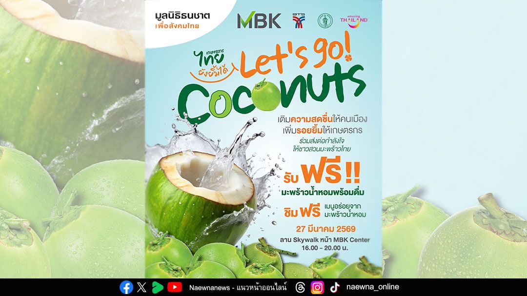 มูลนิธิธนชาตเพื่อสังคมไทย ร่วมกับ บริษัท เอ็ม บี เค จำกัด (มหาชน) พร้อมด้วย กรุงเทพมหานคร การท่องเที่ยวแห่งประเทศไทย และ BTS จัดกิจกรรม “เกษตรกรไทยยังยิ้มได้ : Let’s go! Coconuts” เพื่อช่วยบรรเทาความเดือดร้อนของเกษตรกรผู้ปลูกมะพร้าวน้ำหอมที่กำลังได้รับผลกระทบจากภาวะราคาผลผลิตตกต่ำ โดยมีเป้าหมายเพื่อช่วยระบายผลผลิต สร้างรายได้ และส่งต่อกำลังใจให้เกษตรกรสามารถดำรงอาชีพได้อย่างมั่นคง กิจกรรมดังกล่าวจะจัดขึ้นในวันศุกร์ที่ 27 มีนาคม 2569 ตั้งแต่เวลา 16.00 น. เป็นต้นไป ณ ลานสกายวอล์ค ชั้น 2 ศูนย์การค้าเอ็ม บี เค เซ็นเตอร์