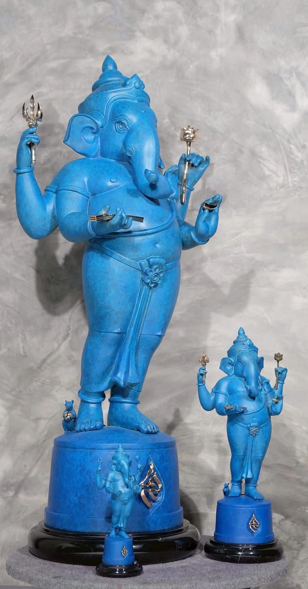 พระพิฆเนศ รุ่น “มหาคณปติอักษรศิลป์” สร้างในปางประทับยืน 4 กร พระหัตถบนซ้ายถือวัชระ หมายถึง เพชรหรือสายฟ้า แสดงถึงการอำนวยอวยชัย พลังอำนาจ บารมี และความสำเร็จรวดเร็วดุจดังสายฟ้า พระหัตถ์บนขวาถือดอกบัว หมายถึง ขจัดมลทินต่างๆ หลุดพ้นจากความมืดสู่แสงสว่างแห่งปัญญา และพลังแห่งความเป็นสิริมงคล พระหัตถ์ล่างซ้ายถือคัมภีร์ หมายถึง ปัญญา ความรู้และสัจธรรม สื่อถึงการเรียนรู้ไม่มีสิ้นสุด เสริมสิริมงคลด้านการศึกษาและความคิดสร้างสรรค์ พระหัตถ์ล่างขวาถืองา หมายถึง ดุจปลายปากกามอบความสำเร็จ ในการศึกษาและความคิดริเริ่มสร้างสรรค์ในกิจการงานต่างๆ