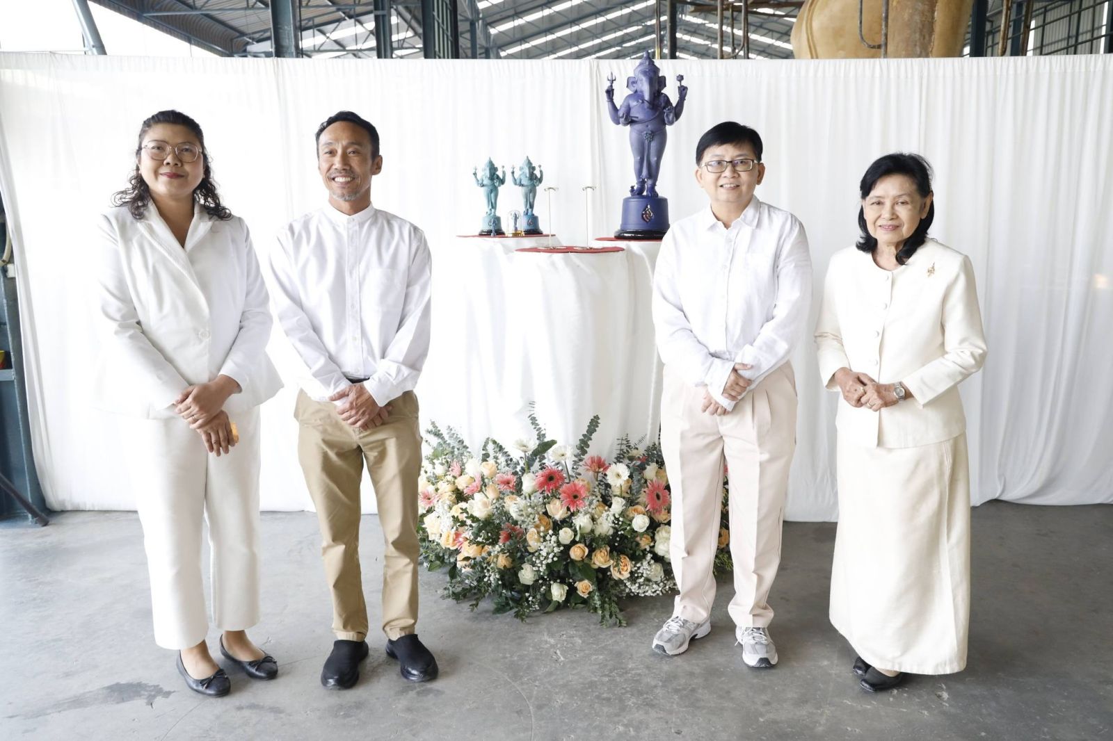 คณะผู้บริหารคณะอักษรศาสตร์ นำ รศ.ดร.วรางคณา นิพัทธ์สุขกิจ คณบดีคณะอักษรศาสตร์ ม.ศิลปากร ร่วมกับสมาคมศิษย์เก่าคณะอักษรศาสตร์ นำโดย ศิรินุช มีนาภินันท์ นายกสมาคมศิษย์เก่าคณะอักษรศาสตร์ จัดพิธีเททอง โดยมี ผศ.มานะ ไทวัฒนกุล ผู้ออกแบบ และ ดร.รัชฎาพร ฤทธิจันทร์ รองคณบดี ร่วมพิธี