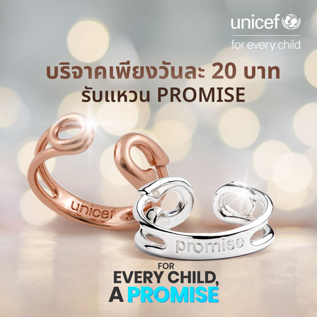 สัญลักษณ์ของแคมเปญนี้คือ แหวน PROMISE ซึ่งได้แรงบันดาลใจจากเข็มกลัดซ่อนปลายที่คุณแม่ตั้งครรภ์มักสวมใส่เพื่อเป็นเครื่องหมายแห่งการปกป้องคุ้มครองแม่และลูก รูปทรงของเข็มกลัดจึงถูกถ่ายทอดมาเป็นวงแหวน สื่อถึงคำมั่นสัญญาแห่งความห่วงใย ความหวัง และความเป็นน้ำหนึ่งใจเดียวกันกับเด็ก ๆ ที่กำลังเผชิญความยากลำบาก ไม่ว่าพวกเขาจะอยู่ที่ใดในโลก