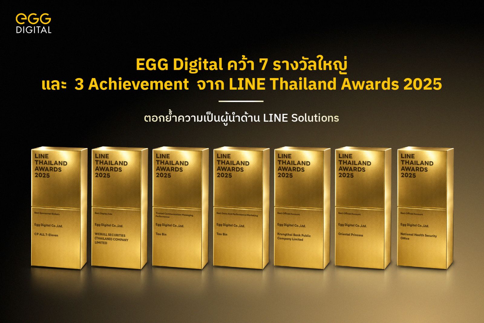 เอ้ก ดิจิทัล สะท้อนความสำเร็จในการใช้ LINE เป็นขุมพลังขับเคลื่อนความสำเร็จให้แบรนด์ในปีนี้ ผ่านการคว้ารางวัลจากแคมเปญของลูกค้าองค์กรในหลายอุตสาหกรรม ทั้งการเงิน Food & Beverage ภาครัฐ ธุรกิจค้าปลีก ผลิตภัณฑ์ความงาม และสกินแคร์ รวม 7 รางวัล จากเวที LINE Thailand Awards 2025 ได้แก่