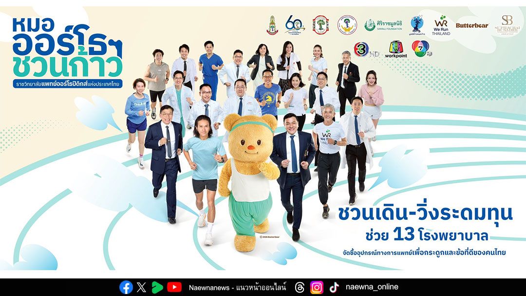 ท่ามกลางสถานการณ์ที่ผู้ป่วยโรคกระดูกและข้อในประเทศไทยเพิ่มขึ้นต่อเนื่องแตะราว 7 ล้านคน หรือคิดเป็น 10% ของประชากรไทย ขณะที่เทคโนโลยีทางการแพทย์สมัยใหม่ ซึ่งช่วยเพิ่มความแม่นยำในการรักษา ลดผลกระทบจากการผ่าตัด และส่งเสริมให้ผู้ป่วยฟื้นตัวได้เร็วขึ้น ยังมีต้นทุนสูงเกินกว่าที่โรงพยาบาลในภูมิภาคหลายแห่งจะเข้าถึงได้อย่างเพียงพอ โครงการ “หมอออร์โธฯ ชวนก้าว เพื่อ 13 โรงพยาบาล” ซึ่งจัดขึ้นโดยราชวิทยาลัยแพทย์ออร์โธปิดิกส์แห่งประเทศไทย ร่วมกับ มูลนิธิแพทย์ออร์โธปิดิกส์, ศิริราชมูลนิธิ มูลนิธิก้าวคนละก้าว มูลนิธิศุภชัย - บุษดี เจียรวนนท์ We Run THAILAND และน้องเนย (Butterbear) จึงเดินหน้าต่อเนื่องด้วยพลังความร่วมมือจากทุกภาคส่วน เพื่อเชิญชวนคนไทยร่วมดูแลสุขภาพของตนเองผ่านการเดิน-วิ่ง ควบคู่กับการร่วมบริจาคสมทบทุนจัดหาอุปกรณ์ทางการแพทย์ด้านกระดูกและข้อ อันจะช่วยเพิ่มโอกาสให้ผู้ป่วยทั่วประเทศเข้าถึงการรักษาได้อย่างทั่วถึง ทันท่วงที และมีคุณภาพชีวิตที่ดียิ่งขึ้น พร้อมตอกย้ำว่าการดูแลสุขภาพของตนเองสามารถแปรเปลี่ยนเป็นพลังแห่งการให้ เพื่อส่งต่อโอกาสในการรักษาแก่ผู้ป่วยที่ยังรอความช่วยเหลือใน 13 โรงพยาบาลทั่วประเทศ