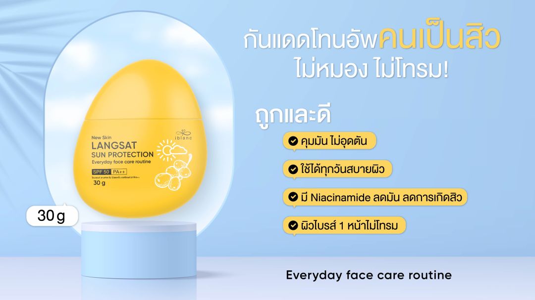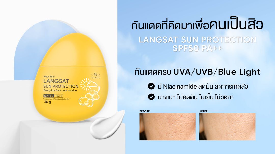 สำหรับใครที่กำลังสงสัย เป็นสิว...กันแดดยังจำเป็นอยู่ไหม? “iblanc Langsat Sun Protection SPF50 PA++” คือไอเทมควรมีของคนเป็นสิวจริงหรือไม่? วันนี้ ไอบลองก์ สกินแคร์ที่ออกแบบมาเพื่อคนเป็นสิวและผิวแพ้ง่าย มีคำตอบมาฝากค่ะ
