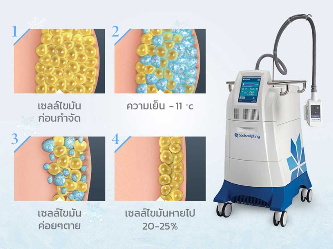 CoolSculpting ทำงานโดยการทำให้เซลล์ไขมันไวต่อความเย็นแข็งตัวและเข้าสู่กระบวนการตาย ก่อนที่ร่างกายจะกำจัดออกผ่านระบบน้ำเหลืองและการเผาผลาญ