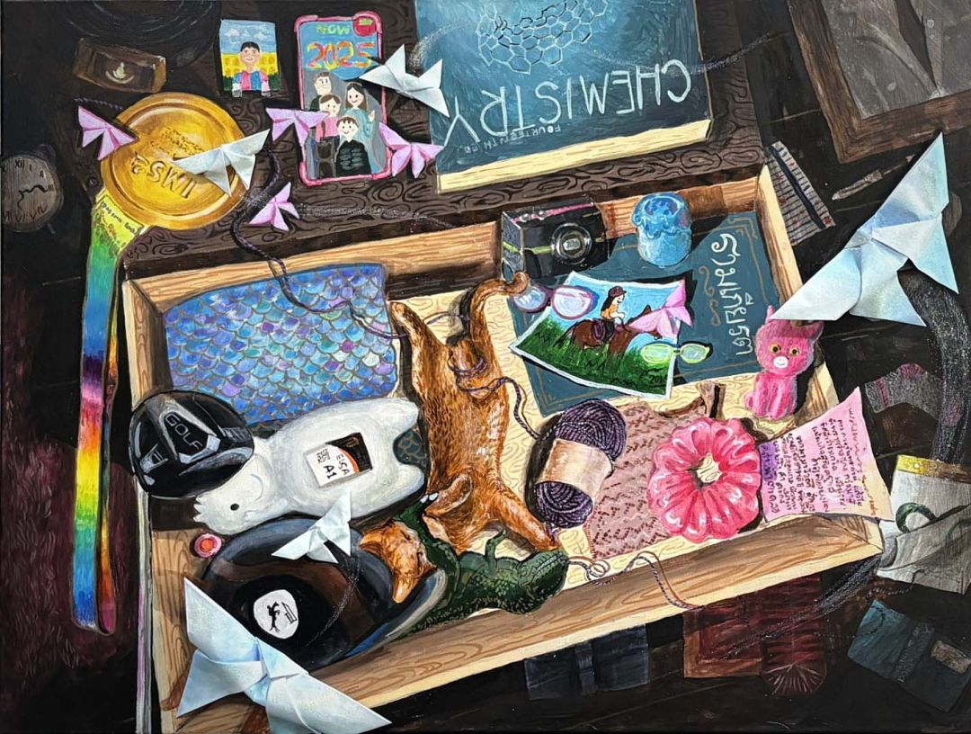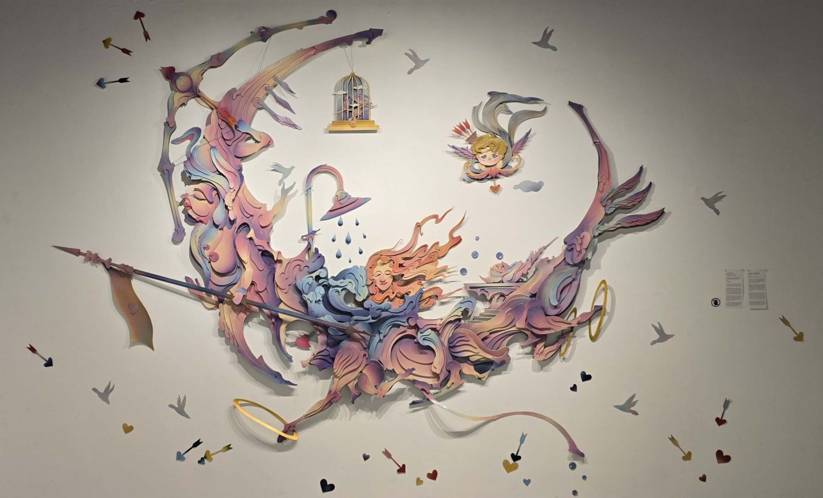 มิติรัก ผลงานของ กฤตยชย์ ภู่หอม นิทรรศการนี้เชื้อเชิญให้ผู้ชมก้าวเข้าสู่พื้นที่แห่งการรับรู้ เพื่อสำรวจ ตกตะกอน และตีความมิติของความรักผ่านประสบการณ์ของตนเอง ราวกับการตกหลุมรักงานศิลปะเป็นครั้งแรก จากความรู้สึกที่ยังไม่คุ้นเคย ค่อย ๆ แปรเปลี่ยนเป็นการเรียนรู้ ความผูกพัน และความรักที่เติบโตขึ้นอย่างช้า ๆ ภายในใจ พร้อมเชื่อมโยงหัวใจของผู้คนผ่านอารมณ์ ความรู้สึก และช่วงเวลาที่ถูกแบ่งปันร่วมกันในพื้นที่เดียวกันอย่างอ่อนโยนและลึกซึ้ง ผลงานของ กฤตยชย์ ถ่ายทอดความงดงามของความรัก ผ่านภาพแทนและสัญญะทางศิลปะ โดยหยิบยก คิวปิด และ อโฟรไดท์ มาเป็นตัวแทนของความรัก ความปรารถนา และความลุ่มหลง ผสานเข้ากับสัญลักษณ์ต่าง ๆ ที่ซ่อนนัยความหมายกระจายอยู่ในผลงานแต่ละชิ้น การจัดวางองค์ประกอบอย่างละเอียดอ่อนภายในนิทรรศการ ช่วยสะท้อนให้เห็นถึงความไม่แน่นอนและความเปราะบางของช่วงเวลาแห่งการตกหลุมรักอย่างละเมียดละไม จัดแสดงถึง 17 พฤษภาคม