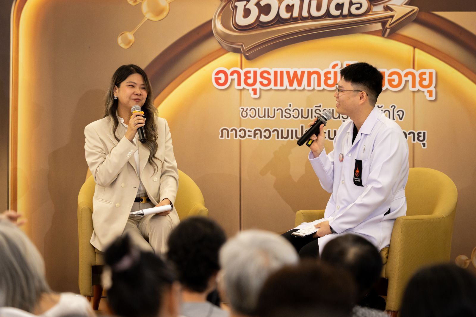 นอกจากสาระความรู้บนเวทีแล้ว กิจกรรมครั้งนี้ยังเปิดพื้นที่ให้ผู้เข้าร่วมกิจกรรมได้ตรวจสุขภาพและรับคำแนะนำจากทีมสหวิชาชีพ ประกอบด้วย การให้บริการคัดกรองภาวะเปราะบางและสมองเสื่อมโดยพยาบาลเชี่ยวชาญการดูแลผู้สูงอายุ กิจกรรมออกกำลังกายสมองห่างไกลสมองเสื่อม โดยนักกิจกรรมบำบัด การตรวจวิเคราะห์องค์ประกอบในร่างกายด้วยเครื่อง BIA เพื่อประเมินมวลกล้ามเนื้อและไขมันอย่างละเอียด และแนะนำเทคนิคการออกกำลังกายให้ฟิตเพื่อชีวิตไปต่อ จากทีมนักวิทยาศาสตร์การกีฬา ร่วมกับนักกายภาพบำบัด การจัดกิจกรรม“เช็กสัญญาณฟิต ชีวิตไปต่อ” ในครั้งนี้ สะท้อนถึงความมุ่งมั่นของโรงพยาบาลจุฬาภรณ์ ราชวิทยาลัยจุฬาภรณ์ในการเป็นที่พึ่งด้านสุขภาพให้กับประชาชน โดยเฉพาะกลุ่มผู้สูงอายุ ผ่านความร่วมมือกับทางแบรนด์ โกลด์ เพื่อผลักดันให้คนไทยก้าวเข้าสู่สังคมสูงวัยอย่างแข็งแรงและมีคุณภาพชีวิตที่ดีอย่างยั่งยืนสืบไป