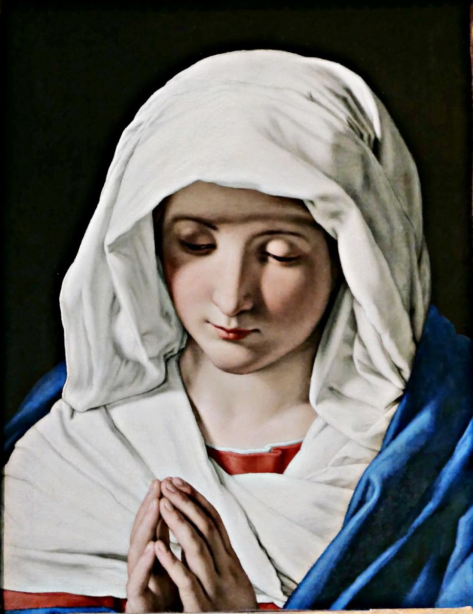 ผลงานชิ้นสุดท้าย The Virgin in Prayer ของ Sassoferato ศิลปินยุคบาโรคชาวอิตาเลี่ยน Sassoferato ที่มีชื่อเต็มว่า Giovanni Battista Salvi da Sassoferrato นี้เกิดที่เมือง Sassoferrato ในแคว้น Marche ในวันที่ 25 สิงหาคม 1609 ประวัติการศึกษาศิลปะของเขาไม่ชัดเจน แต่นักประวัติศาสตร์ศิลป์คาดว่าเขาฝึกงานกับ Domenichino ศิลปินชาวโบโลญญา ผลงานของเขาได้รับอิทธิพลมาจากศิลปินหลายคน อาทิ Albrecht Durer, Guercino และ Raphael แม้เขาจะไม่ได้รับการว่าจ้างมากนัก เขาจึงชอบรังสรรค์งานในเรื่องเดียวกันซ้ำ ๆ อาทิ The Virgin in Prayer ซึ่งคาดว่าน่าจะมีอยู่ถึง 4 ชิ้น ชิ้นที่โด่งดังและได้รับการกล่าวขวัญถึงมากที่สุดอยู่ที่ National Gallery London ภาพวาดพระแม่มารีในขณะภาวนาที่มีขนาดเท่าองค์จริงชิ้นนี้ ทรงพลังจนทำให้ผู้ชมรู้สึกราวกับพระองค์ได้ประทับอยู่ในห้องเดียวกันนี้อย่างน่าอัศจรรย์ แม้พื้นหลังจะถูกฉาบด้วยสีดำสนิท แต่แสงสว่างที่ทอดผ่านผืนผ้าคลุมผมสีขาวกลับช่วยขับเน้นใบหน้าให้กระจ่างใส จนสัมผัสได้ถึงความสงบเยือกเย็นที่แผ่ซ่านออกมาสะกดใจผู้ชม สมกับที่เป็นหนึ่งในใบหน้าที่งดงามที่สุดของพิพิธภัณฑ์แห่งนี้