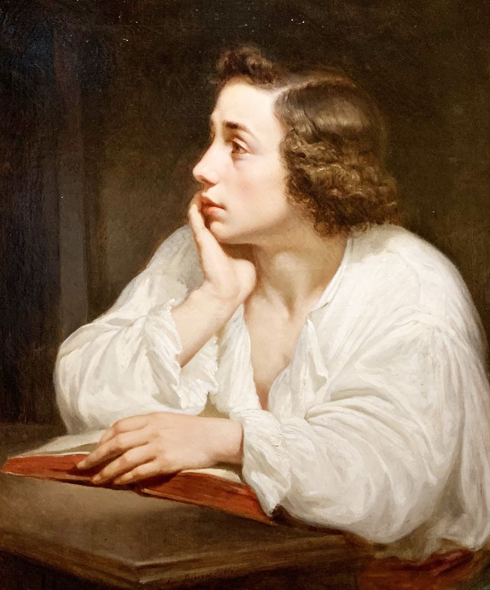 ผลงานชิ้นที่สอง Young Man Distracted ของ Jean Raymond Hippolyte Lazerges แม้เขาจะเป็นคน Algeria และไม่ได้รับการสนับสนุนจากบิดาที่เป็นเจ้าของร้านขายขนมปังให้เรียนศิลปะ แต่หลังจากที่เขารับราชการเป็นทหารจนครบกำหนด เขาตัดสินใจอยู่ปารีสต่อ และเรียนศิลปะกับ David d’Angers และ Francois Bouchot ก่อนเริ่มรังสรรค์งานที่เกี่ยวเนื่องกับศาสนจักรตามที่ได้รับการว่าจ้างจากราชการ แม้เขาจะต้องใช้ชีวิตอย่างยากจนในช่วงเวลานั้น แต่เขากลับได้เริ่มสร้างงานที่ชื่อ Death of the Virgin ในหอสวดมนต์ที่ Palais des Tuileries ซึ่งช่วยให้เขาเริ่มเป็นที่รู้จักมากขึ้น เขาจำเป็นต้องกลับ Algeria เนื่องจากปัญหาสุขภาพ และเริ่มสร้างงานแนวตะวันออก อีกทั้งยังร่วมกับ Joseph Sintes และ Alfred Chataud จัดตั้งแนวทางศิลปะแบบตะวันให้กับอัลจีเรีย หลังจากนั้น 2 ปี เขากลับไปปารีสอีกครั้งและเริ่มรังสรรค์งานเกี่ยวกับชีวิตของพระนางมารีตามหอสวดมนต์ Eglise Notre-dame de Recouvrance d’Orleans จนทำให้เขาได้รับตำแหน่งอัศวิน Legion of Honor แม้ศิลปินจะเลื่องชื่อจากการวาดพระแม่มารี แต่ผลงาน Young Man Distracted ชิ้นนี้กลับพิสูจน์ให้เห็นถึงความอัจฉริยะในการเขียนภาพเหมือนบุรุษ ด้วยการถ่ายทอดผิวสัมผัสที่ดูเรียบเนียน ตัดกับความเข้มของริมฝีปากและเรือนผมสีทองอย่างสมบูรณ์แบบ สายตาที่เหม่อลอยคล้ายตกอยู่ในความฝันสามารถสะกดให้ผู้ชมตกตะลึงจนอดไม่ได้ที่จะต้องเพ่งมองอีกครั้งว่าใบหน้าที่งดงามปานเทพธิดานี้คือบุรุษจริงหรือ