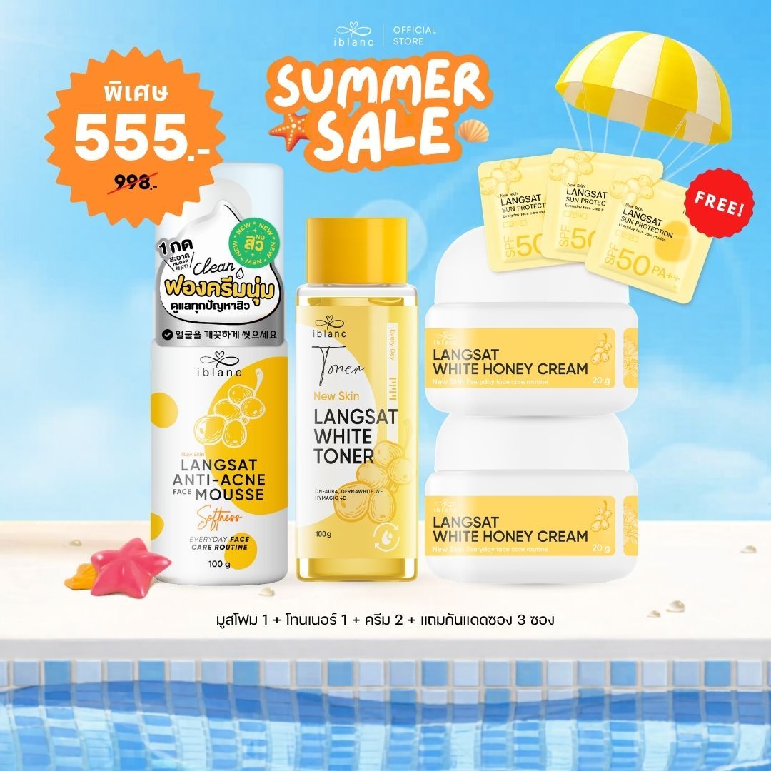 ใครไม่อยากผิวพังช่วงซัมเมอร์และหลังสงกรานต์ ฟังทางนี้! ไอบลองก์ ชวนปกป้องผิวด้วยเซ็ตดูแลผิวลางสาด สกินแคร์ตัวท็อปขายดีที่ช่วยปกป้องผิวพังจากสิวขั้นสุด ที่มาพร้อมกับโปรโมชันแรงสุดคุ้ม ทั้งลด ทั้งแถม ตลอดเดือนเมษายนนี้ ประกอบด้วย ไอบลองก์ ลางสาด เฟซ แอนตี้-แอคเน่ มูส, ไอบลองก์ ลางสาด ไวท์โทนเนอร์, ไอบลองก์ ลางสาด ไวท์ ฮันนี่ ครีม และ ไอบลองก์ ลางสาด ซันโปรเทคชั่น ทั้งหมดนี้คือเซ็ตบิวตี้ไอเทมที่จะช่วยปกป้องผิวทุกคนให้รอดจากสิวผิวพังตลอดซัมเมอร์นี้ จะมีโปรโมชันอะไรบ้าง ไปเลือกช้อปกันได้เลย