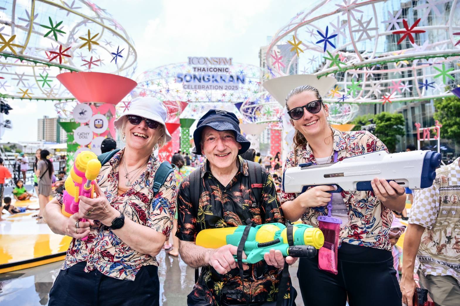 • THAICONIC WATER FESTIVAL สาดความสุข สนุกสุดเหวี่ยงกับประสบการณ์เล่นน้ำสงกรานต์ริมแม่น้ำเจ้าพระยาที่นำ “ช้าง” สัญลักษณ์ของประเทศไทย มาตีความใหม่เป็นแลนด์มาร์กแห่งการเฉลิมฉลองผ่านช้างยักษ์พ่นน้ำ เป็น Water Landmark ขนาดใหญ่สูง 9 เมตร ผลงาน Art Collaboration จากศิลปิน Dee SweetDrug Studio โดยมีชื่อว่า “ฉ่ำบุญและรินสุข” ซึ่งช้างทั้งสองตัวได้ถูกออกแบบให้มีงวง 3 งวง เป็นสัญลักษณ์ของความโชคดี โดยงวงที่ 1 ทำหน้าที่ดึงดูดโชคลาภให้ทุกคนฉ่ำบุญ งวงที่ 2 คอยกวักผู้คนและมิตรภาพที่ดี งวงที่ 3 ทำหน้าที่รินสุขให้ทุกคนตลอดปีและตลอดไป พร้อมปรากฏข้อความมงคลบนตัวช้างซึ่งสื่อถึงคำอวยพรมากมาย นอกจากนี้ไอคอนสยามยังใส่ใจในความปลอดภัยในการเล่นน้ำของเด็กและทุกคนในครอบครัว จัด Kids Zone โซนพิเศษสำหรับเด็กเล็กเพื่อให้ผู้ปกครองสามารถดูแลบุตรหลานได้อย่างทั่วถึง พร้อมกันนี้ยังอำนวยความสะดวกให้กับผู้ที่มาเล่นน้ำสงกรานต์ด้วยโซนเป่าแห้งพลังงานสะอาดจาก Solar Cell เพื่อให้ทุกท่านสามารถใช้เวลากับครอบครัวหลังจากเล่นน้ำได้ภายในไอคอนสยามอีกด้วย