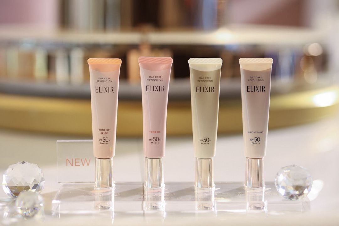 ELIXIR (อิลิคเซอร์)แบรนด์ Anti-Agingสกินแคร์อันดับ 1ในญี่ปุ่น^ผู้เชี่ยวชาญด้านคอลลาเจนมายาวนานกว่า40ปี จัดงาน ELIXIR Tone Up UV, The New Era of Pearl Glow Moments ณDUSIT CENTRAL PARK ต่อยอดความสำเร็จของกันแดดที่มียอดขายกว่า 2.5ล้านชิ้นทั่วโลก*ด้วยการเปิดตัวผลิตภัณฑ์กันแดดขายดีเฉดสีใหม่! ELIXIR Day Care Revolution Tone Up SPF50+ PA++++สี Pure Beige กันแดดโทนอัพบูสคอลลาเจน+ปรับโทนสีผิวให้สม่ำเสมอ พร้อมปกปิดจุดด่างดำ ผสาน 3 คุณสมบัติในหนึ่งเดียว ทั้งกันแดด,ไพร์เมอร์ และมอยส์เจอร์ไรเซอร์บำรุงผิว ช่วยให้ผิวดูเปล่งปลั่งอ่อนเยาว์ ละเอียดเรียบเนียน กระจ่างใสขึ้น และช่วยให้เมคอัพติดทนนานยิ่งขึ้น เผยผิวสวยโกลว์ใสเปล่งปลั่ง12ชั่วโมง