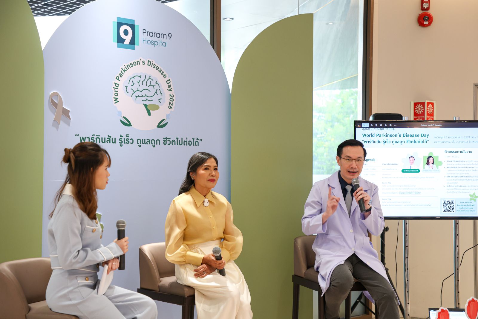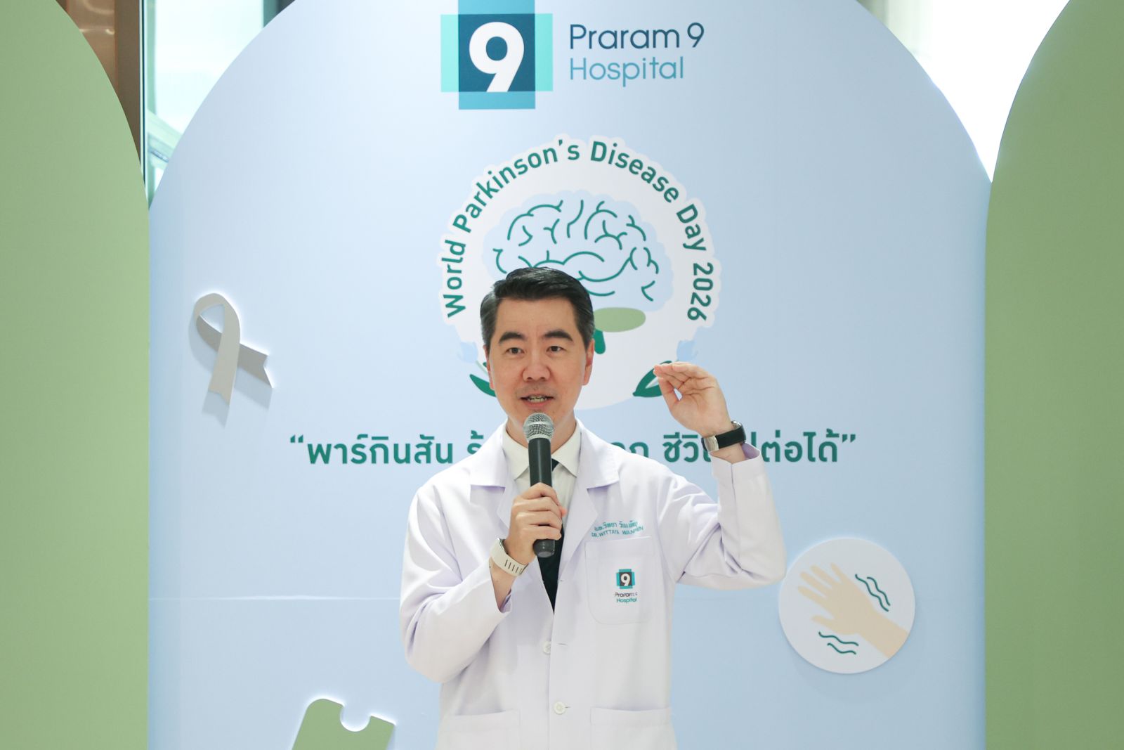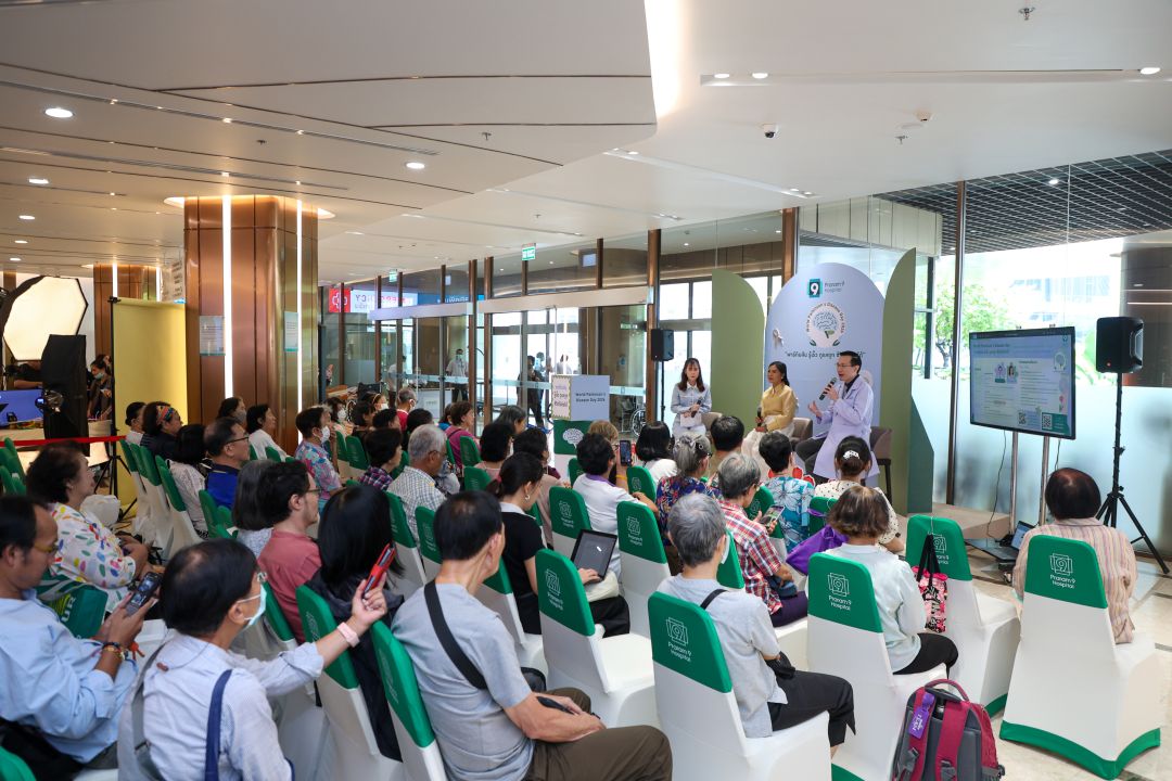 เพื่อสร้างการตระหนักรู้เกี่ยวกับโรคพาร์กินสัน ศูนย์สมองและระบบประสาท โรงพยาบาลพระรามเก้า จึงได้จัดกิจกรรม World Parkinson’s Disease Day 2026 “พาร์กินสัน รู้เร็ว ดูแลถูก ชีวิตไปต่อได้” เนื่องในวันพาร์กินสันโลก เพื่อให้ความรู้เกี่ยวกับโรคพาร์กินสัน สัญญาณเตือนระยะเริ่มต้น และแนวทางดูแลผู้ป่วยอย่างถูกต้อง โดยมีแพทย์ผู้เชี่ยวชาญร่วมเสวนาในหัวข้อ “พาร์กินสัน อาการเริ่มต้นที่ไม่ควรมองข้าม พร้อมเทคนิคดูแลผู้ป่วยพาร์กินสันที่บ้าน” นำโดย นพ.สิทธิ เพชรรัชตะชาติ แพทย์ผู้ชำนาญการด้านสมองและระบบประสาท และ พญ.ปิยะวรรณ งามองอาจ แพทย์ผู้ชำนาญการด้านเวชศาสตร์ฟื้นฟู พร้อมแขกรับเชิญพิเศษ “แม่แก้ว” คุณณราวดี คูกิมิยะ โดยบรรยากาศภายในงานได้รับความสนใจและมีผู้เข้าร่วมอย่างคับคั่ง