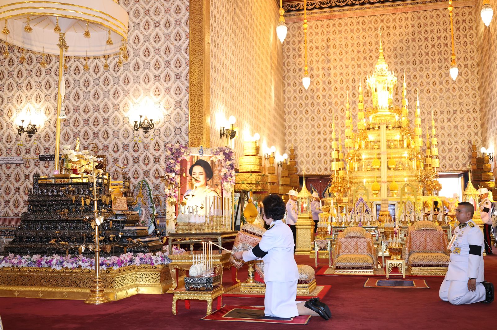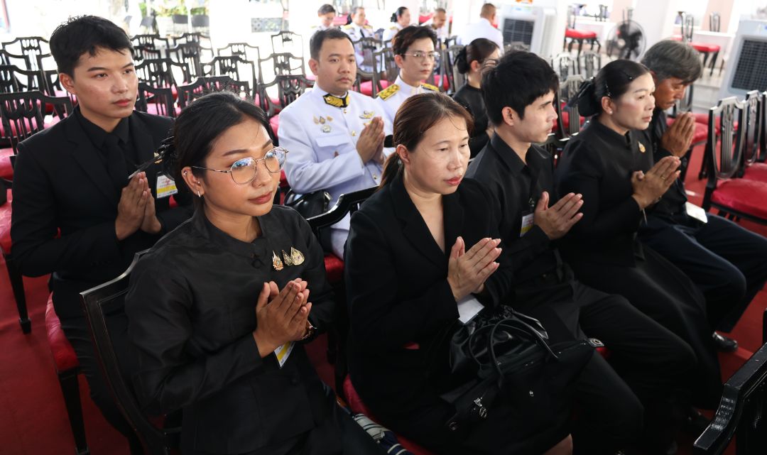เพ็ญพักตร์ ศรีทอง นายกสมาคมสภาแม่ดีเด่นแห่งชาติฯ จุดธูปเทียนบูชาพระรัตนตรัย และกราบถวายบังคมพระบรมศพ