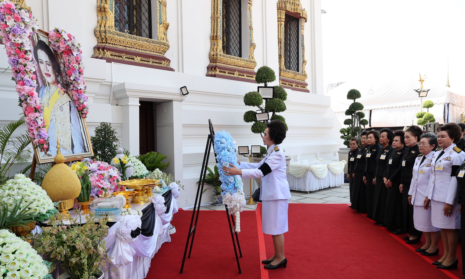 ในการนี้มี เพ็ญพักตร์ ศรีทอง นายกสมาคมสภาแม่ดีเด่นแห่งชาติฯ เป็นประธานพิธี พร้อมด้วยคณะกรรมการ อาทิ อโนมา วิจิตรวิกรม, ดร.นุชนาถ วสุรัตน์, พญ.สุวณี รักธรรม, สุกัญญา ประจวบเหมาะ, เบญจรัตน์ จริยธาราสิทธิ์, ประยูร เหล่าสายเชื้อ, ยุพา สุภอมรพันธุ์, ดร.ปัญจรัตน์ มังกรกนก, สุชาดา เกษมทรัพย์,พล.ต.หญิง ดร.อังคณา สุเมธสิทธิกุล, ผ่องเพ็ญ อาชาเทวัญ ตลอดจนสมาชิกสมาคม เจ้าหน้าที่ ร่วมพิธีด้วยความสำนึกในพระมหากรุณาธิคุณอย่างหาที่สุดมิได้