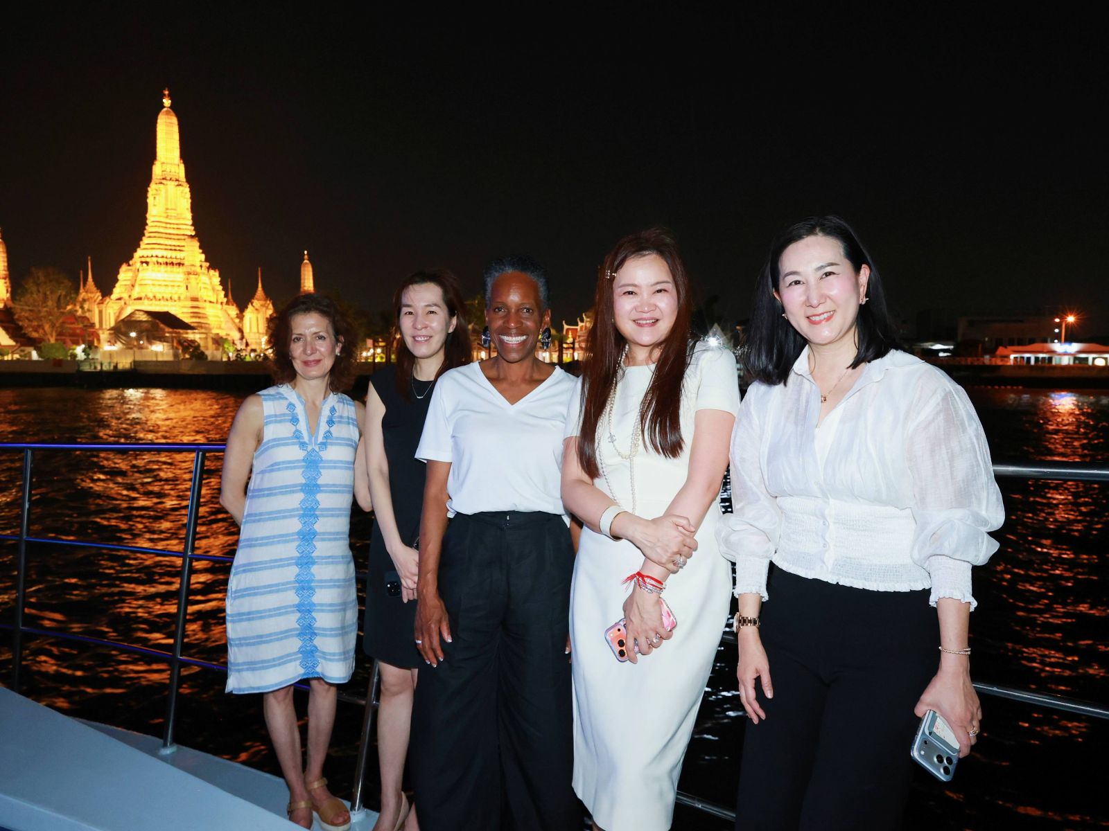 นอกจากนี้ยังมีทริปล่องเรือชมความงามของสถานที่สำคัญริมสองฝั่งแห่งสายน้ำเจ้าพระยา ไม่ว่าจะเป็นทิวทัศน์ของวัดอรุณราชวรารามวรมหาวิหาร, พระบรมมหาราชวัง, สะพานพระราม 8 ฯลฯ ตบท้ายด้วยงานเลี้ยงรับรองที่ ประยุทธ-สุวิมล มหากิจศิริ อาสาเป็นเจ้าภาพ โดยมีแขกผู้มีเกียรติ และเหล่าศิษย์เก่ามหาวิทยาลัยบอสตันต่างพร้อมใจมาร่วมต้อนรับอธิการบดีมหาวิทยาลัยบอสตันอย่างอบอุ่น อาทิ ประยุทธ-สุวิมล มหากิจศิริ, ศ.ดร.นพ.ยงยุทธ ศิริวัฒนอักษร, ศุภชาติ อังคสุวรรณศิริ, สุริยน-จิตรดี พูลวรลักษณ์, พรพิมล ปฐมศักดิ์, ธีระ ศิริเกียรติสูง, สริสา วรประคุณ, ปรียามล ธนวิสุทธิ์ ฯลฯ