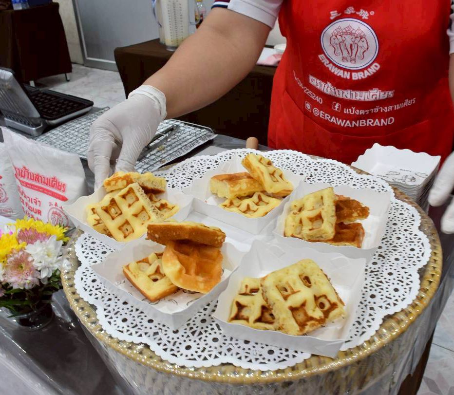 โครงการฝึกอาชีพ “แป้งข้าวขนมไทยนานาชาติ” บริษัท โรงเส้นหมี่ชอเฮง จำกัด ได้รับความร่วมมือจากภาคีเครือข่าย อาทิ โรตารี พญาไท, มูลนิธิเพื่อสถาบันราชานุกูล ในพระอุปถัมภ์สมเด็จพระเจ้าพี่นางเธอ เจ้าฟ้ากัลยาณิวัฒนา กรมหลวงนราธิวาสราชนครินทร์, สมาคมอัสสัมชัญ, สหสมาคมศิษย์เซนต์ เดอ ชาร์ตร, สมาคมสตรีไทยแห่งประเทศไทย ในพระบรมราชินูปถัมภ์, ซอนต้า อินเตอร์เนชั่นแนล ภูมิภาค 17 จัดขึ้นเพื่อฝึกทักษะอาชีพการทำขนมไทยและนานาชาติจากแป้งตราจ้างสามเศียร และผลิตภัณฑ์ในเครือโรงเส้นหมี่ชอเฮง โดยปีนี้มีเยาวชน ครูเกษียณ และผู้มีรายได้น้อยที่ต้องการฝึกอาชีพเพื่อเสริมสร้างรายได้เข้าร่วมอบรมจำนวน 120 คน โดยไม่เสียค่าใช้จ่าย ซึ่งผู้เข้าอบรมจะได้เรียนรู้เกี่ยวกับการสร้างมูลค่าเพิ่มให้กับข้าวและธัญพืชไทย ลงมือฝึกปฏิบัติทำขนมฝรั่งกุฎีจีน ขนมไดฟุกุไส้สตรอเบอรี่และถั่วแดงกวน ขนมบัวลอย ปิดท้ายด้วยการแนะนำสื่อสร้างสรรค์ “เอราวัณอีบุ๊คแบ่งปัน” แหล่งรวมสาระความรู้ดีๆ ที่สามารถนำไปต่อยอดได้ พร้อมรับแป้งจากข้าวที่สามารถใช้ทดแทนแป้งสาลี เหมาะสำหรับผู้แพ้กลูเต็นให้นำกลับไปฝึกมือที่บ้าน