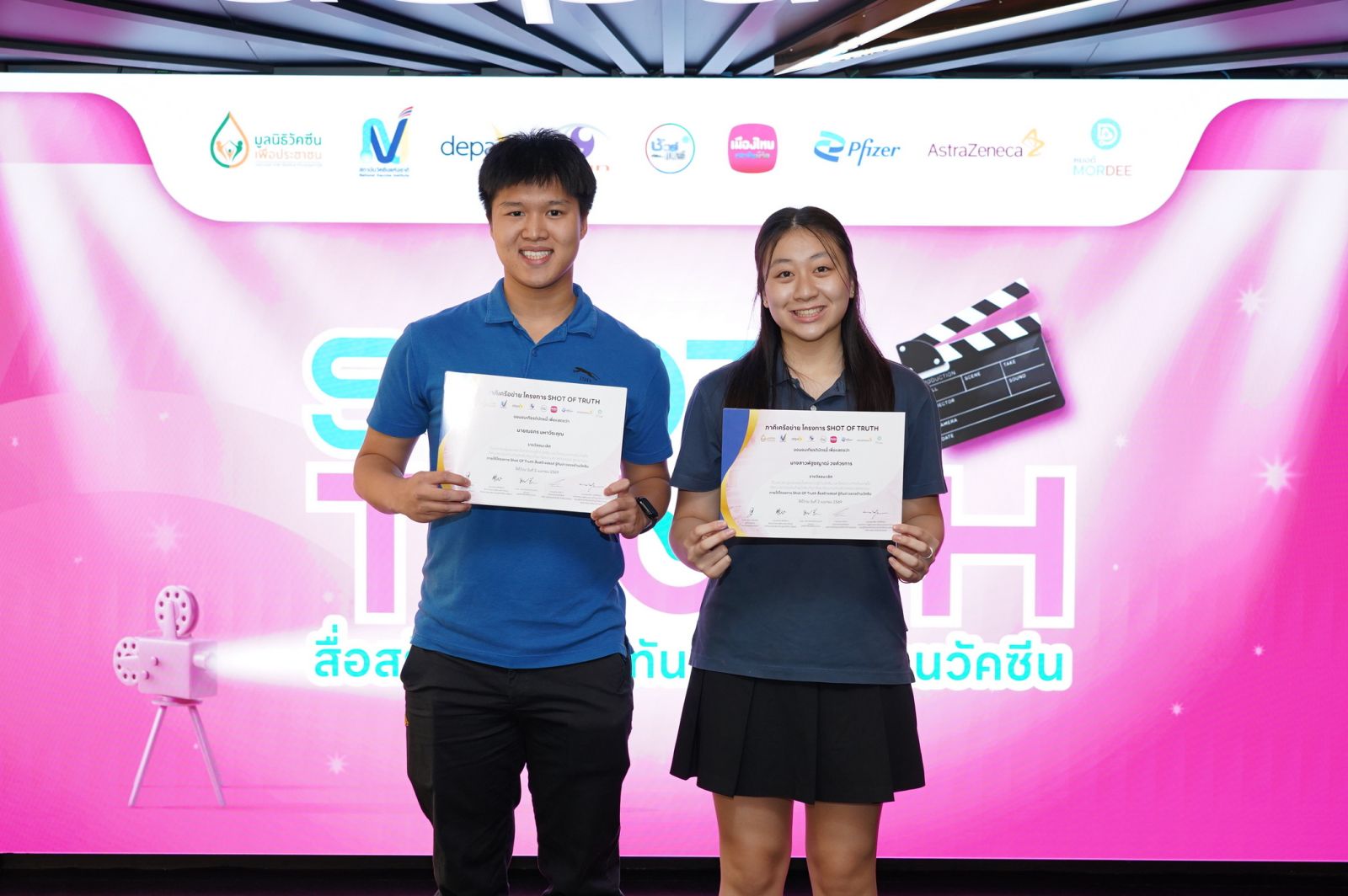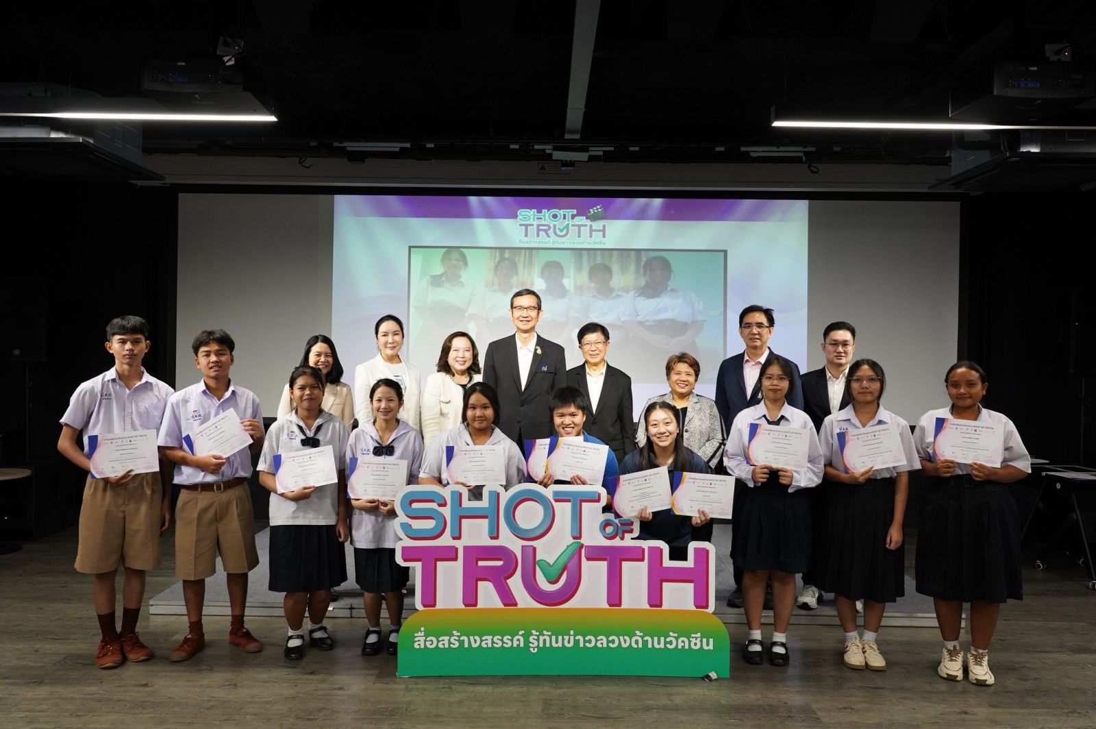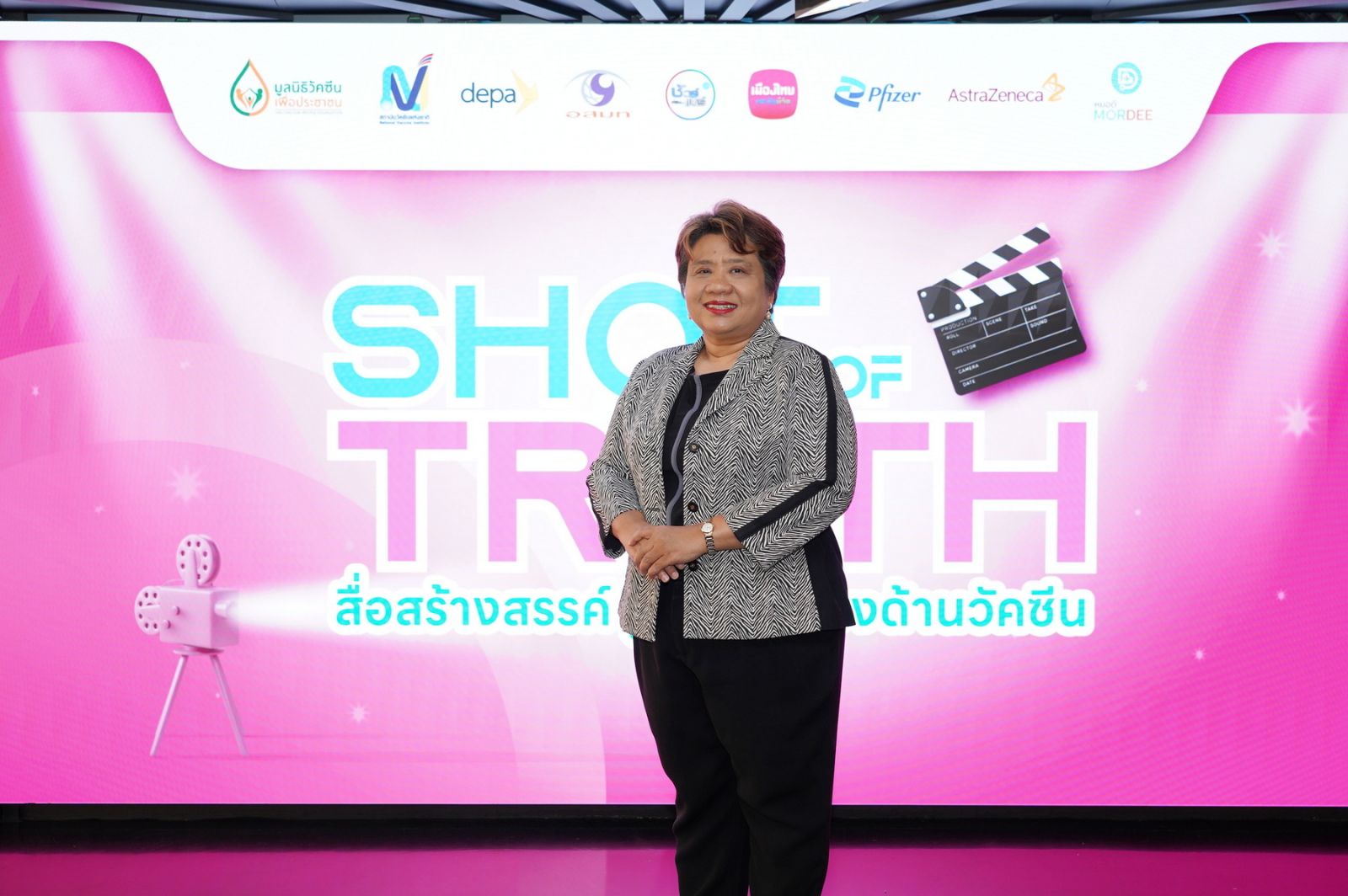 มูลนิธิวัคซีนเพื่อประชาชน ร่วมกับ สถาบันวัคซีนแห่งชาติ สำนักงานส่งเสริมเศรษฐกิจดิจิทัล (depa) ศูนย์ชัวร์ก่อนแชร์ สำนักข่าวไทย อสมท เมืองไทยประกันชีวิต ไฟเซอร์ (ประเทศไทย) จำกัด แอสตร้าเซนเนก้า (ประเทศไทย) และ MorDee (หมอดี) แพลตฟอร์มบริการสุขภาพอัจฉริยะ โดย ทรู ดิจิทัล กรุ๊ป จัดพิธีประกาศผลและมอบรางวัลโครงการ “Shot of Truth สื่อสร้างสรรค์ รู้ทันข่าวลวงด้านวัคซีน เพื่อยกย่องผลงานของนักเรียน นักศึกษา และคนรุ่นใหม่ที่ร่วมผลิตคลิปวิดีโอสั้น ถ่ายทอดข้อมูลที่ถูกต้องเกี่ยวกับวัคซีนและโรคระบบทางเดินหายใจที่สามารถป้องกันได้ด้วยวัคซีน สร้างภูมิคุ้มกันข่าวลวง และส่งเสริมการใช้สื่อออนไลน์อย่างสร้างสรรค์ในสังคมไทย