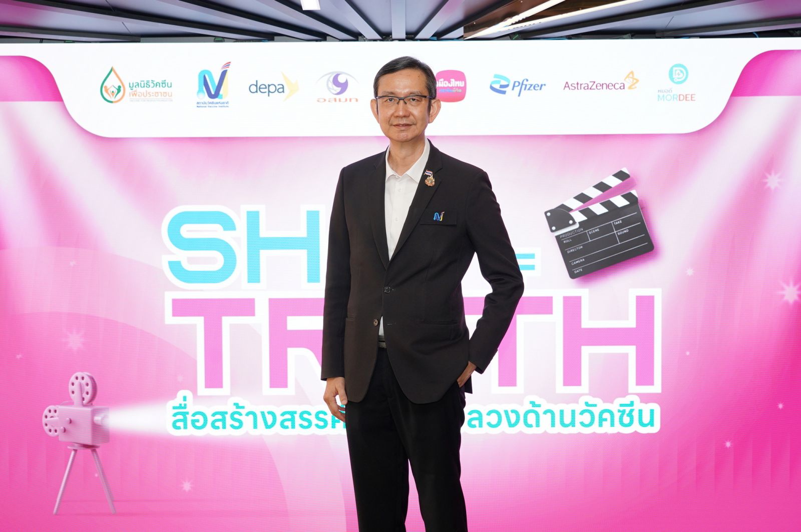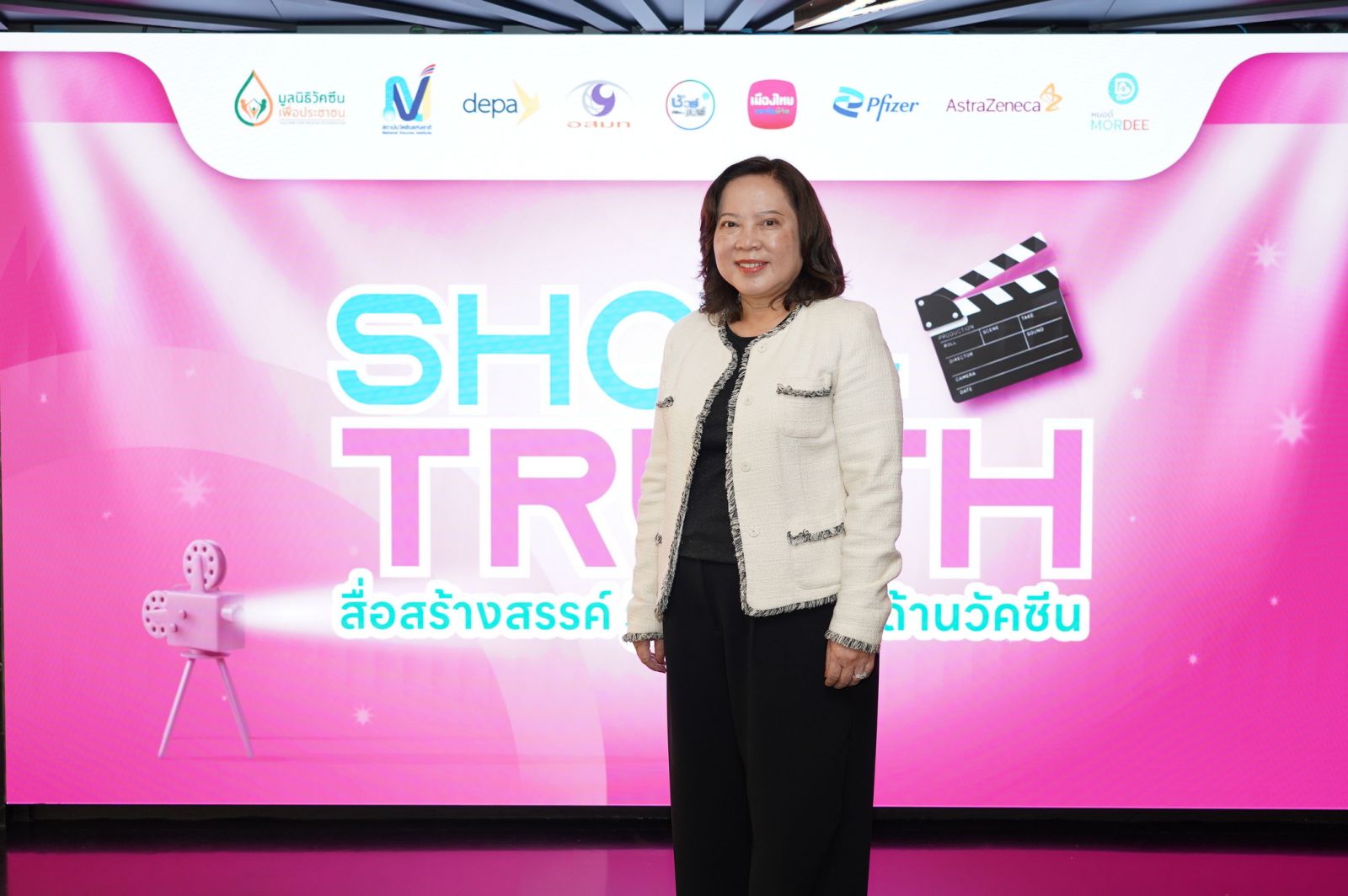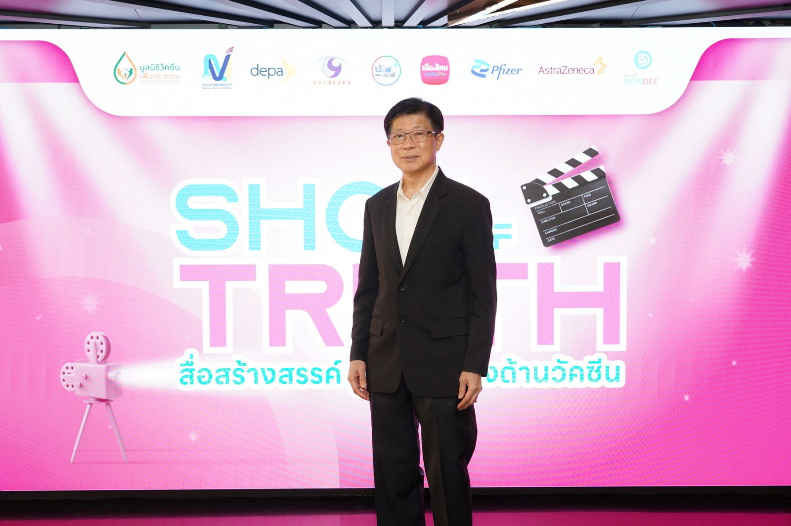 มูลนิธิวัคซีนเพื่อประชาชน ร่วมกับ สถาบันวัคซีนแห่งชาติ สำนักงานส่งเสริมเศรษฐกิจดิจิทัล (depa) ศูนย์ชัวร์ก่อนแชร์ สำนักข่าวไทย อสมท เมืองไทยประกันชีวิต ไฟเซอร์ (ประเทศไทย) จำกัด แอสตร้าเซนเนก้า (ประเทศไทย) และ MorDee (หมอดี) แพลตฟอร์มบริการสุขภาพอัจฉริยะ โดย ทรู ดิจิทัล กรุ๊ป จัดพิธีประกาศผลและมอบรางวัลโครงการ “Shot of Truth สื่อสร้างสรรค์ รู้ทันข่าวลวงด้านวัคซีน เพื่อยกย่องผลงานของนักเรียน นักศึกษา และคนรุ่นใหม่ที่ร่วมผลิตคลิปวิดีโอสั้น ถ่ายทอดข้อมูลที่ถูกต้องเกี่ยวกับวัคซีนและโรคระบบทางเดินหายใจที่สามารถป้องกันได้ด้วยวัคซีน สร้างภูมิคุ้มกันข่าวลวง และส่งเสริมการใช้สื่อออนไลน์อย่างสร้างสรรค์ในสังคมไทย