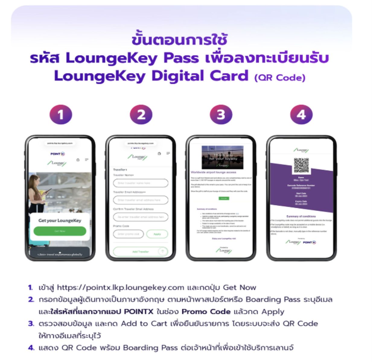 เพื่อฉลองความร่วมมือในครั้งนี้ POINTX ได้จัดโปรโมชัน Flash Deal ใช้คะแนน POINTX แลกรับ e-Coupon LoungeKey Pass ในเรทพิเศษ โดย e-Coupon LoungeKey Pass มูลค่า 1,427 บาท สามารถแลกได้โดยใช้พอยท์เพียง 15,456 POINTX จากปกติ 18,400 POINTX ตั้งแต่วันนี้ - วันที่ 25 เมษายน 2569 นี้ เพื่อชวนลูกค้า POINTX ยกระดับทุกการเดินทางให้สะดวกสบายกว่าที่เคย