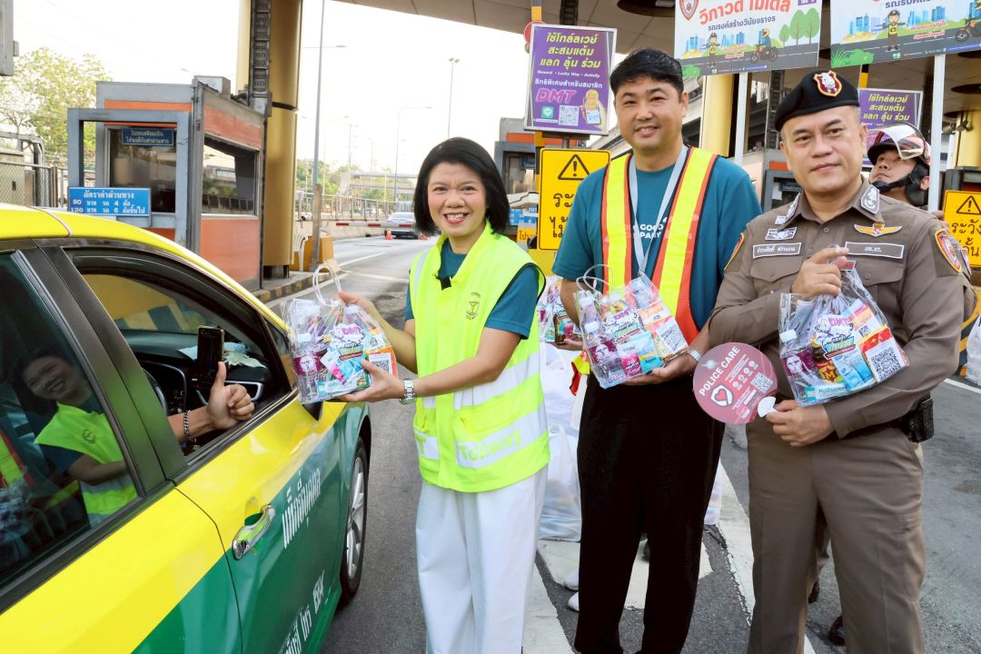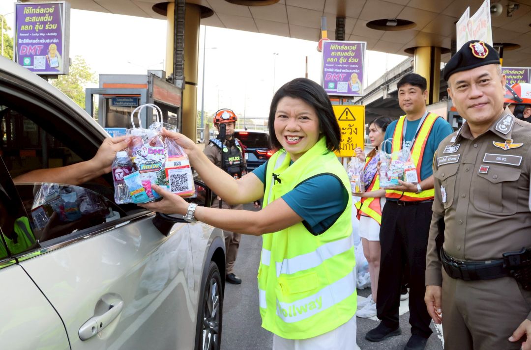 บงกชรัตน์ ตั้งชูกุลรองกรรมการผู้จัดการ สายงานธุรกิจและการเงิน พร้อมด้วย น.ส. อัจฉรา เจริญพร ผู้ช่วยกรรมการผู้จัดการอาวุโส สายงานพัฒนาความยั่งยืนองค์กร บมจ.ทางยกระดับดอนเมือง และคณะ ร่วมมือกับทีมตร.จราจร นำโดย พล.ต.ต.ดำรงศักดิ์ สว่างงาม ผบก.จร.และ พ.ต.อ.ณัฐพงษ์ เชื้อเดช รอง ผบก.จร. ลงพื้นที่หน้าด่านโทล์ลเวย์ มอบกระเป๋ากันง่วงซึ่งบรรจุน้ำดื่ม กาแฟ ผ้าเย็นเครื่องดื่มชูกำลังให้แก่ผู้ใช้ทางเพื่อให้ผู้ขับขี่ได้บรรเทาอาการง่วงเหนื่อยล้าระหว่างขับขี่และเดินทางกลับภูมิลำเนาถึงที่หมายโดยสวัสดิภาพในช่วงเทศกาลปีใหม่ไทย ณ ด่านดินแดง 1 เมื่อวันที่ 10 เมษายน 2569