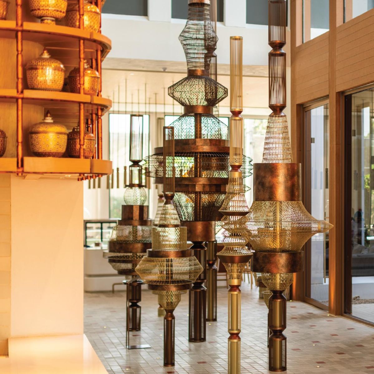 นอกจากกิจกรรมและอีเวนต์ กลุ่มเซ็นทรัลยังให้ความสำคัญกับการออกแบบ “พื้นที่” ให้เป็นส่วนหนึ่งของประสบการณ์ โดยเฉพาะในกลุ่มโรงแรมเซ็นทารา ที่นำอัตลักษณ์ศิลปวัฒนธรรมท้องถิ่นในแต่ละจังหวัดมาถ่ายทอดผ่านงานออกแบบภายใน ไม่ว่าจะเป็นวัสดุ ลวดลาย หรือองค์ประกอบศิลป์ที่สะท้อนเรื่องราวของพื้นที่นั้น ๆ พื้นที่ของโรงแรมจึงไม่ใช่เพียงสถานที่พัก แต่กลายเป็นพื้นที่ที่เปิดโอกาสให้นักท่องเที่ยวได้ “สัมผัส” และเชื่อมโยงกับวัฒนธรรมท้องถิ่นอย่างใกล้ชิด อาทิ โรงแรมเซ็นทาราแกรนด์บีชรีสอร์ทและวิลล่าหัวหิน โรงแรมเซ็นทาราอยุธยา โรงแรมเซ็นทาราอุบล โรงแรมเซ็นทาราอุดร และโรงแรมเซ็นทาราโคราช