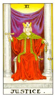 อิทธิพลของไพ่ยุติธรรม (Justice) คุณจะปวดหัวกับปัญหาบัตรเครดิตที่ถูกทวงถาม เล่นเอาเครียดน่าดู เพราะยังหมุนไม่ออกเสียที ส่วนความรักแม้จะดูไปได้ดี แต่ให้ระวังเรื่องหึงหวงจุกจิกจู้จี้ จะทำให้รักเริ่มร้าว ส่วนการงานทำงานได้ดีมีผลงาน แต่เรื่องส่วนตัวจะเป็นที่เม้าท์ของเพื่อนร่วมงาน ดังนั้นควรนิ่งแล้วทุกสิ่งจะคลี่คลาย สำหรับคนที่เป็นเจ้านายตนเองแม้กิจการจะไปได้ดี แต่อย่าคิดการใหญ่เกินตัว ช่วงนี้มีโอกาสควรทำบุญทำทานเสียบ้าง จะทำให้เราสบายใจมีสติดำเนินชีวิตไปได้ด้วยดี