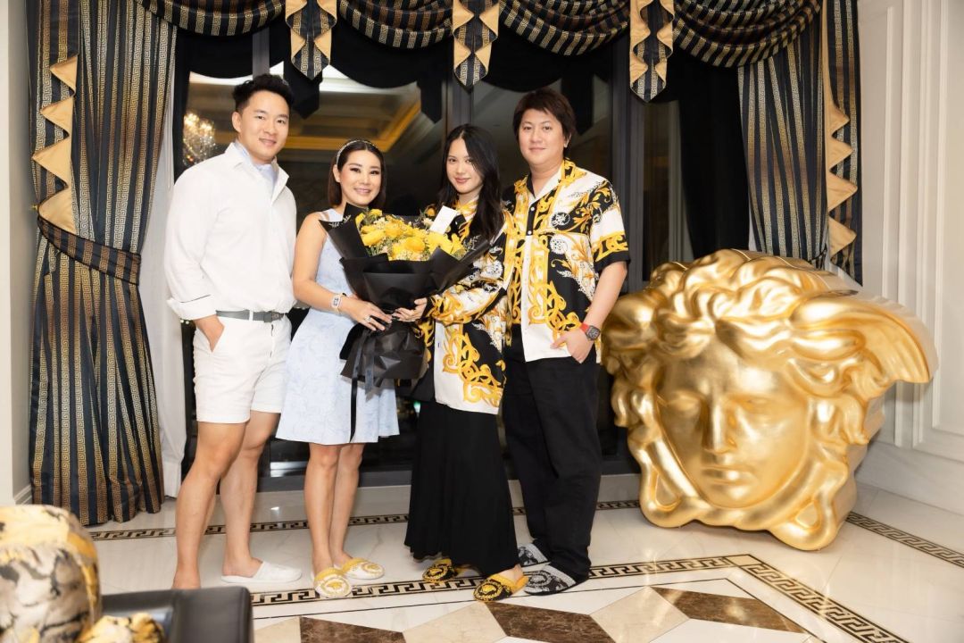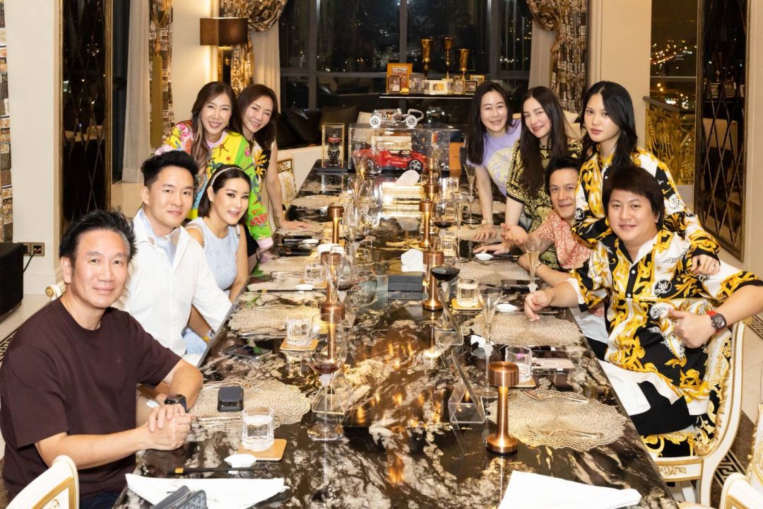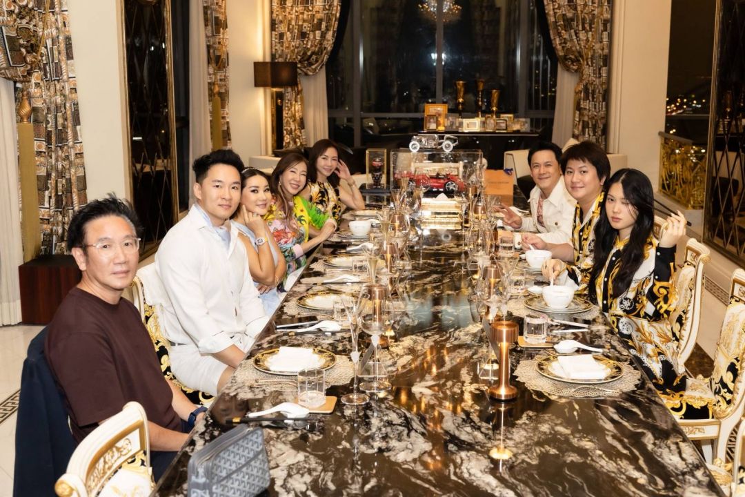 ล่าสุดทั้งคู่เปิดคฤหาสน์ Versace ต้อนรับเพื่อนสนิทอย่าง คุณเบน-กัลยานี กมลวิศิษฎ์ หลานสะใภ้คนสวยของคุณขูวิทย์ กมลวิศิษฐ์ และ คุณจอนนี่-ธิติธรรม กมลวิศิษฎ์ ร่วมด้วยเพื่อนสนิทอีกหลายคน อาทิ คุณเอิ๊ก พรหมพร, คุณฟลุ๊ค เกริกพล ที่ควงแขนมาพร้อมภรรยาคนสวย คุณนาตาลี เจียวรนนท์ และเพื่อนสนิทในแวดวงไฮโซ ร่วมรับประทานอาหารแสดงความยินดี