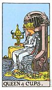 อิทธิพลของไพ่ราชินีถือถ้วย (Queen of Cups) คุณคนโสดจะพบคนถูกใจไปกันได้ดีตั้งแต่เริ่มต้น ส่วนคนที่มีครอบครัวรักจะอบอุ่นเข้าใจกันมากกว่าเดิม และคนที่เคยมีปัญหากันก่อนหน้านี้ จะมีพี่น้องประสานรอยร้าวให้ ด้านการเงินจะมีโชคลาภอย่างไม่คาดฝัน ทำให้เงินทองที่เคยตึงมือเริ่มผ่อนคลายเสียที ด้านการงานที่คิดจะเปลี่ยนย้ายงานใหม่ จะได้งานถูกใจและผลตอบแทนดี และที่ว่างงานอยู่จะได้งานทำกับเขาเสียที ส่วนที่ทำธุรกิจส่วนตัวปัญหาที่เกิดจะเคลียร์ได้อย่างดี และที่มีหุ้นส่วนจะทำงานเข้าขากันได้เป็นอย่างดี ควรทำบุญบริจาคโลงศพเสริมดวงชะตาชีวิตตนเองได้ดี
