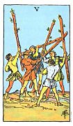 อิทธิพลของไพ่ 5 ไม้เท้า (Four of Wands) คุณที่ทำงานกินเงินเดือนำจะเริ่มเครียดกับงาน เพราะมีปัญหาเข้ามาอย่างตั้งตัวไม่ติดบ่อยครั้ง และที่มีกิจการส่วนตัวให้ระวังบริวารจะสร้างปัญหาให้ ด้านการเงินอย่าหวังเกินกับการเสี่ยงโชค เพราะจะได้ไม่คุ้มเสีย ส่วนคนที่เล่นหุ้นทิ้งไว้ พอได้เงินแต่ไม่มากมาย ส่วนความรักคนที่คบกันอยู่ ต้องเริ่มปรับตัวเข้าหากันบ้าง เพราะรักเริ่มมีปัญหา ส่วนที่เป็นสามีภรรยา อย่าไปใส่ใจกับคำพูดคนอื่น มิฉะนั้นครอบครัวจะไม่เป็นสุข และช่วงนี้ควรไปทำบุญไหว้บูชาพระพิฆเนศ