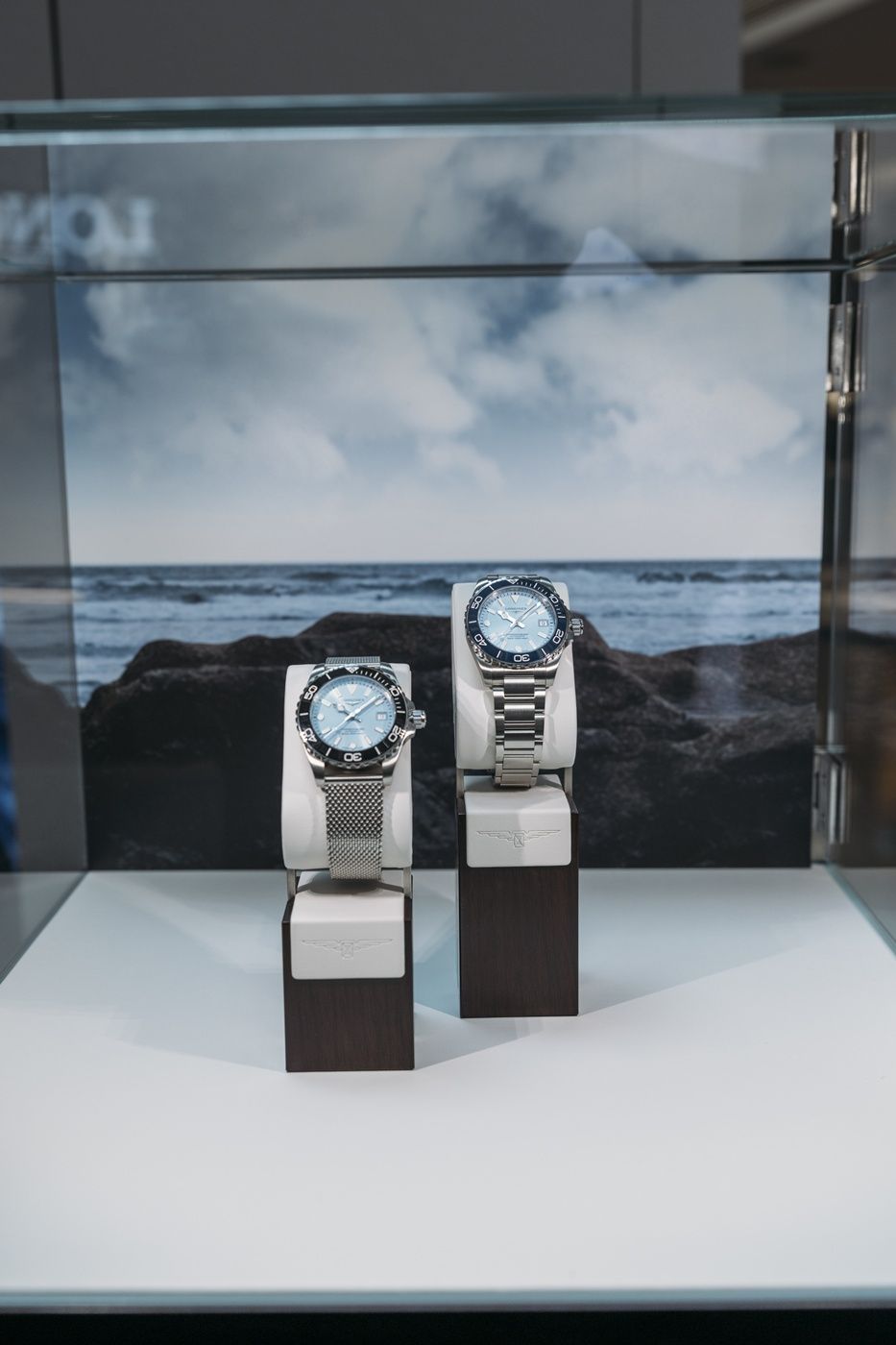 ในปี 2026 ลองจินส์นำเสนอคอลเลกชัน HydroConquest ที่ได้รับการตีความใหม่ทั้งหมดในรูปแบบกลไกอัตโนมัติ โดยมาใน 2 ขนาด ทั้งแบบตัวเรือนสแตนเลสสตีลขนาด 39 มม. และ 42 มม. โดดเด่นด้วยดีไซน์ทันสมัยที่ผสานความสง่างามได้อย่างลงตัว คอลเลกชันนี้มีหน้าปัดให้เลือกถึง 4 รูปแบบ ได้แก่ หน้าปัดแบบขัดเงา (Polished Lacquered) ในเฉดสีน้ำเงิน สีดำ และสีเขียว ซึ่งแต่ละสีมอบมิติที่ลุ่มลึกและชวนน่าหลงใหลพร้อมด้วยตัวเลือกพิเศษอย่างหน้าปัดสีฟ้าฟรอสต์บลูซันเรย์ (Frosted-blue Sunray) ที่สร้างลูกเล่นแห่งแสงเงาอันน่าดึงดูดบนพื้นผิวที่เปี่ยมด้วยเอกลักษณ์ โดยหน้าปัดเหล่านี้ถูกล้อมกรอบด้วยขอบตัวเรือนเซรามิกที่มีให้เลือกถึง 5 เฉดสี ตั้งแต่สีคลาสสิกอย่างสีดำ สีน้ำเงิน และสีเทาสเลท ไปจนถึงสองเฉดสีใหม่ที่เปี่ยมด้วยความสดใสอย่าง สีเขียว Verdant Green และสีฟ้า Luminous Blue โดยสามารถเลือกจับคู่หน้าปัดและขอบตัวเรือนได้อย่างหลากหลาย นอกจากนี้ ระบบขอบตัวเรือนแบบหมุนทิศทางเดียวที่ได้รับการปรับปรุงใหม่ยังมอบสัมผัสการใช้งานที่แม่นยำยิ่งขึ้น และด้วยเม็ดมะยมแบบขันเกลียวพร้อมโครงสร้างที่แข็งแกร่ง เรือนเวลาเหล่านี้จึงสามารถรองรับการกันน้ำได้ลึกถึงระดับ 30 บาร์ (300 เมตร)